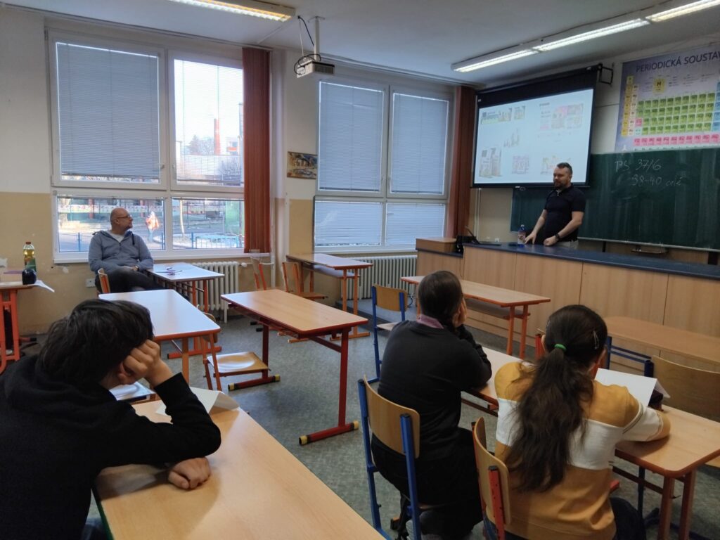 Poslední listopadový pátek strávili žáci a žačky devátých ročníků ve společnosti pěti odborníků, kteří jim přišli popovídat o svých zaměstnáních. Díky programu Nadace České spořitelny s názvem Den pro školu jsme mohli už počtvrté oslovit dobrovolníky z různých odvětví, kteří našim nejstarším dětem v rámci přednášek a debat přiblížili svá povolání. Tentokrát se deváťáci mohli nechat inspirovat profesionály z odvětví marketingu a grafického designu (art director Radek Jína, www.alfredkaspar.cz / www.delamemarketing.cz), léčebné kosmetiky (general manager Roman Dušil, farmaceutická firma Pierre Fabre), projektování a architektury (Matouš Fejfar, ředitel ve [www.skolaprojektovani.cz]www.skolaprojektovani.cz), kyberbezpečnosti (architekt kyberbezpečnosti Stanislav Neruda, Česká spořitelna) nebo módy (Marko Lopatič, módní návrhář a kouč www.markolopatic.cz). Deváťáci si poslechli jejich zajímavé kariérní příběhy i rady do života. Děti ocenily zejména sdílnost odborníků, kteří vstřícně odpovídali na jejich dotazy, včetně těch o výši platu. Všichni profesionálové se shodli na tom, že vzdělání je důležité a k vyššímu výdělku je třeba píle a ochoty na sobě pracovat.