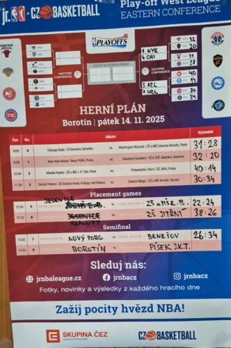Rozhodující utkání pro náš tým začalo s menším zpožděním po druhé hodině, v něm proti nám nastoupilo družstvo z Prahy – Nový PORG – New York Knicks. Po první vyrovnané čtvrtině, kdy jsme se přetahovali o každý bod, další vývoj zápasu zásadně ovlivnila druhá část hry, ve které družstvo z Dukly získalo velký a zásadní náskok. V druhém poločase soupeř udělal pár změn v sestavě a začal náš náskok stahovat, ale díky soustředěné hře v závěru souboje se podařilo našemu týmu udržet vedení a vyhrát 34 : 26!