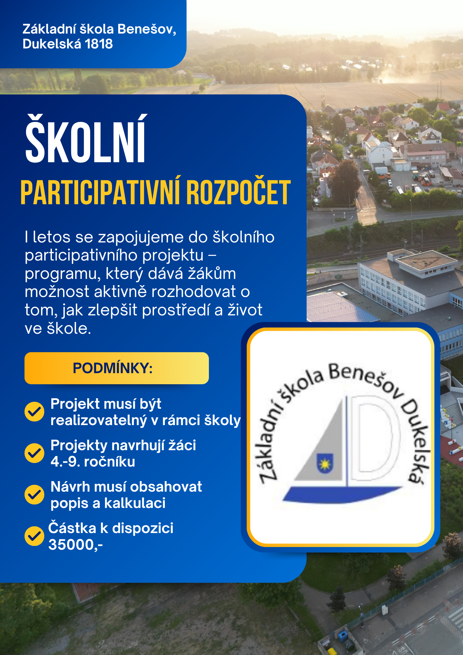 Naše škola se i v tomto roce zapojuje do školního participativního projektu – programu, který dává žákům možnost aktivně rozhodovat o tom, jak zlepšit prostředí a život ve škole. Participativní projekt funguje podobně jako „malý školní rozpočet“, o jehož využití nerozhodují dospělí, ale přímo děti. Ty mohou přicházet s vlastními návrhy, spolupracovat, plánovat, obhajovat své nápady a nakonec i hlasovat o tom, který projekt se opravdu uskuteční.