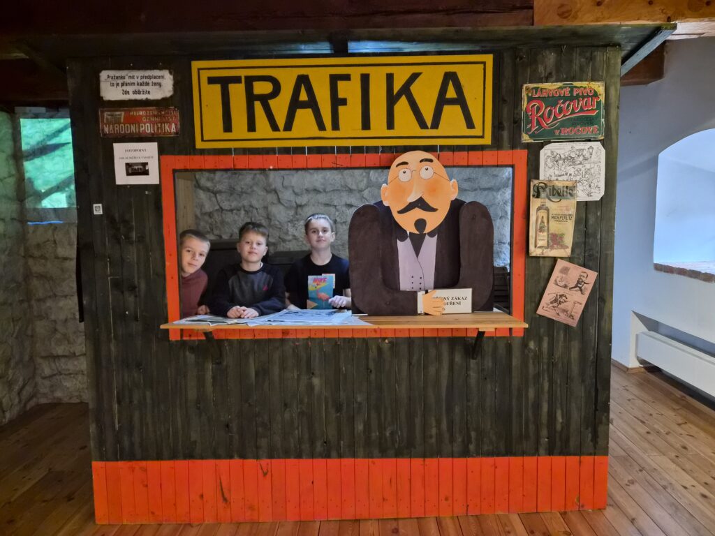 První zastávkou bylo Muzeum T. G. Masaryka v Lánech, kde děti navštívily expozice věnované prezidentovu životu, jeho rodině a vzniku Československa. Se zájmem jsme si všichni prohlédli historické fotografie, dopisy, knihy a osobní předměty. Díky promítaným filmovým ukázkám a výkladu paní průvodkyně jsme se dozvěděli řadu zajímavostí o období první republiky.