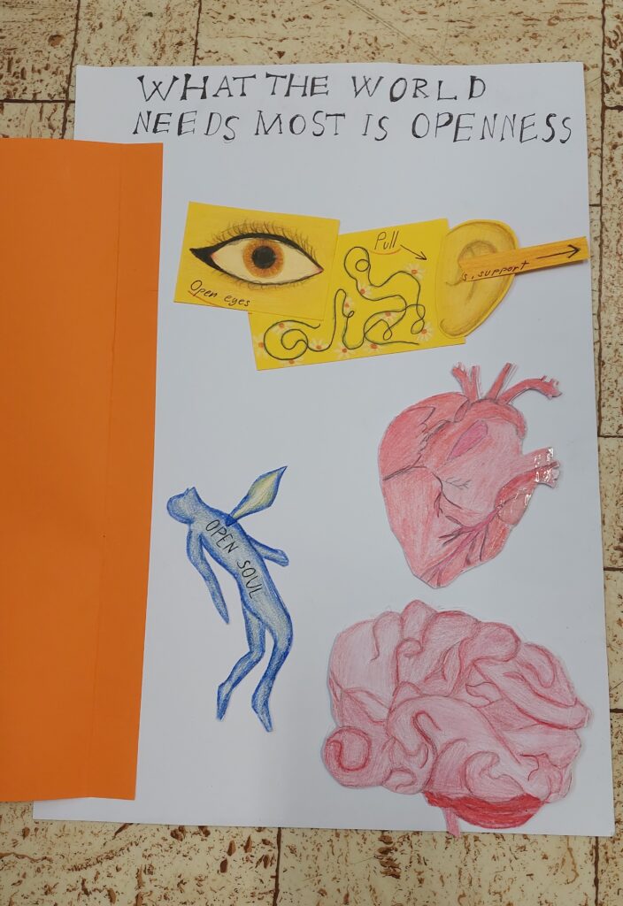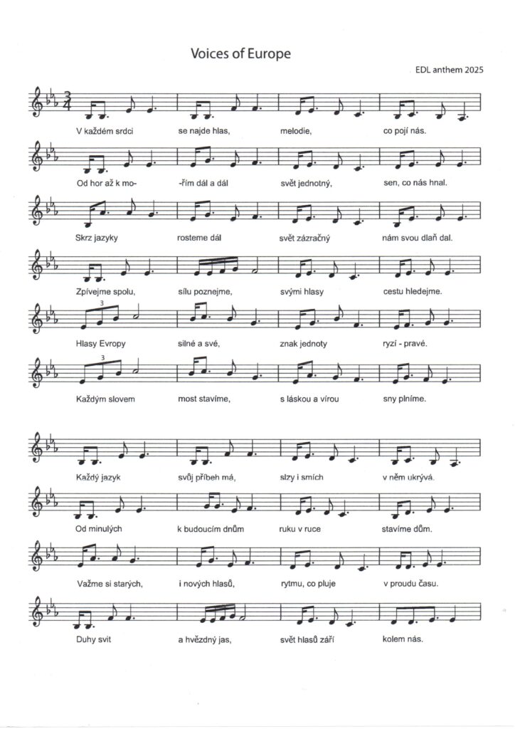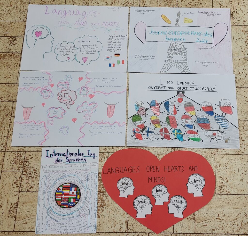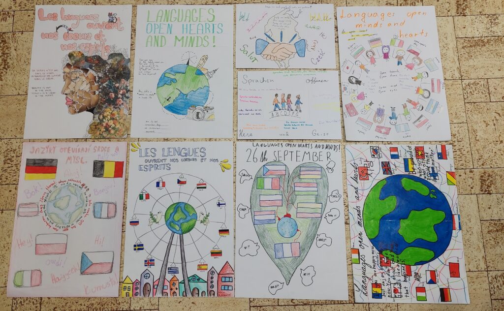 Poslední týden v září jsme se v rámci oslav 25. výročí Evropského dne jazyků věnovali projektům. Rada Evropy, která tuto iniciativu organizuje, letos stanovila téma Languages open hearts and minds. Děti tvořily tematické plakáty. V 5. a 7. ročníku to bylo v rámci hodin anglického jazyka, v 6. ročníku ve výtvarné výchově a v 8. a 9. ročníku ve druhém cizím jazyce. Plakáty obsahovaly citáty a symboly reflektující spojování národů, lidskou sounáležitost, vzájemné porozumění a toleranci napříč různými kulturami a etniky. V hodinách hudební výchovy žáci vytvořili hymnu. S krásnými plakáty a hymnou se chceme pochlubit, a proto vše poputuje do tematické soutěže, kterou Rady Evropy vyhlásila.