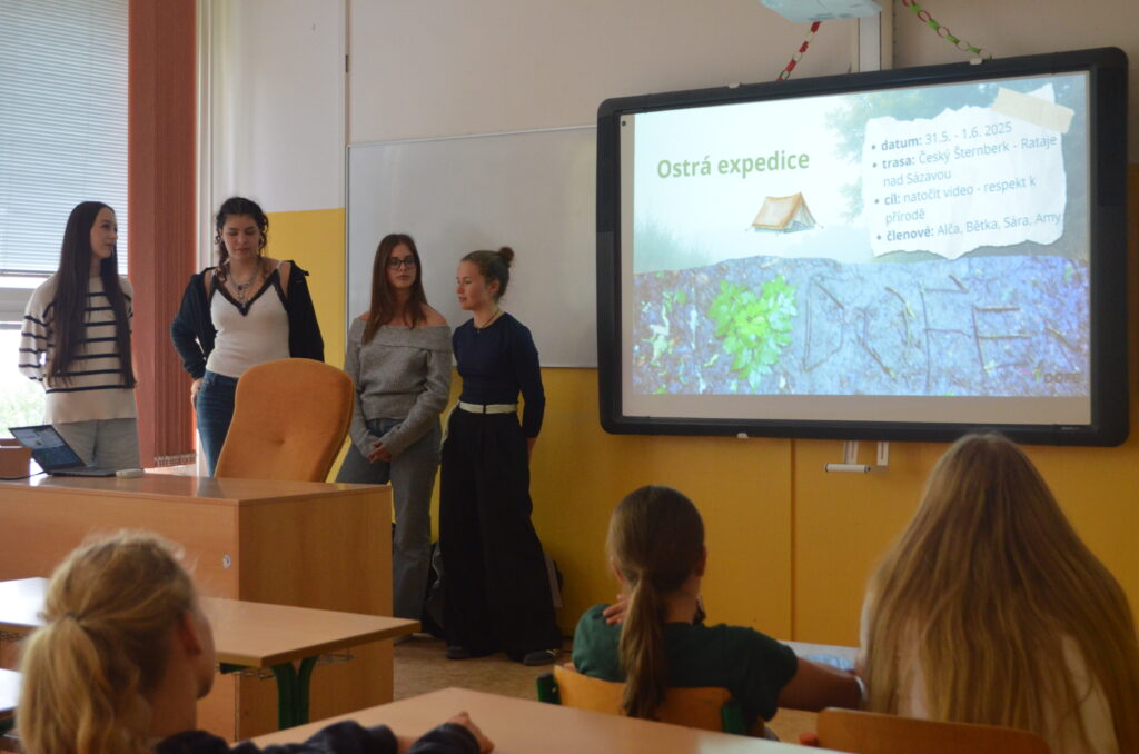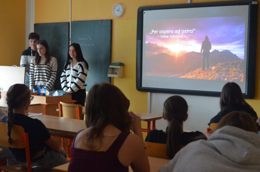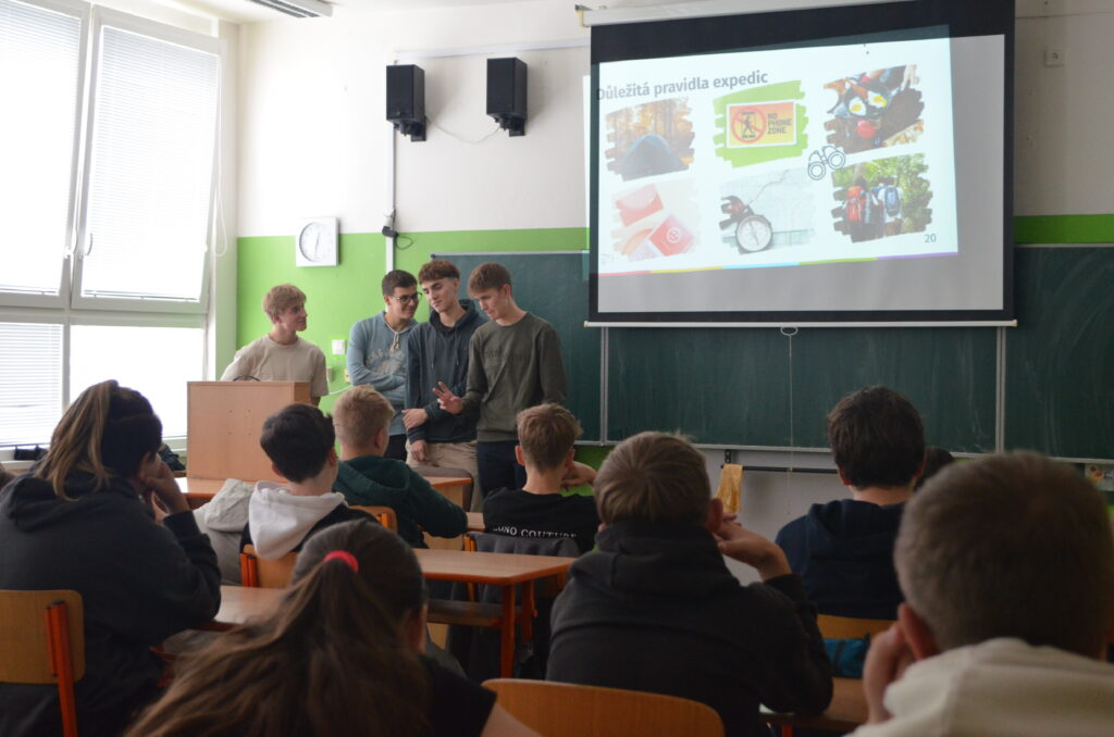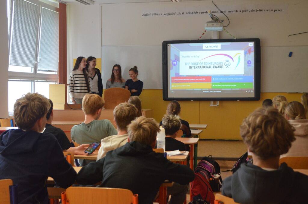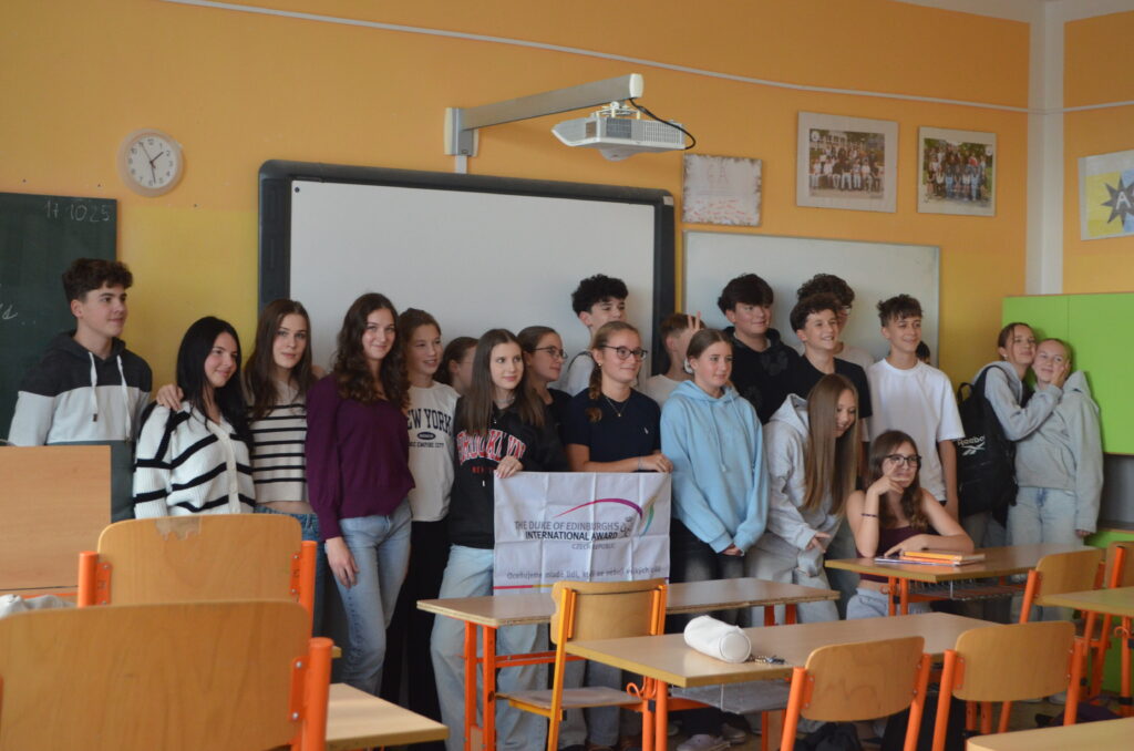 Žáci osmého ročníku přivítali v pátek „dofáky“ – účastníky mezinárodního programu DOFE -z benešovského gymnázia. Studenti gymnázia jim představili mezinárodní seberozvojový program založený v Británii princem Philipem, vévodou z Edinburgu, který miloval sport, dobročinnost a nikdy na sobě nepřestával pracovat. Podobné dovednosti a schopnosti chtěl rozvíjet i u mladých lidí, a tak vznikl tento program založený na neformálním vzdělávání. Děti nesoutěží v tom, kdo bude první nebo lepší, v DOFE soutěží každý jen sám se sebou. Díky DOFE se účastníci rozvíjí ve třech oblastech – dovednost, sport a dobrovolnictví. Vše je zakončeno expedicí v přírodě, v rámci níž musí děti zvládnout orientaci v terénu bez technologií, rozdělat oheň, uvařit si teplé jídlo či postavit stan a strávit noc v přírodě. Vlastní pokrok si dofáci zaznamenávají do mobilní aplikace a po celou dobu je podporuje a pomáhá jim proškolený DOFE vedoucí, v naší škole to bude Kateřina Podhorská. Děti nemusí začínat s novými aktivitami či sportem, mohou se jen lépe a více rozvíjet v tom, co už dělají. Po úspěšném absolvování bude dofákům za splnění všech cílů udělen certifikát a odznak na slavnostní ceremonii. Více informací je k dispozici na https://dofe.cz/. Osmáky na základě dotazníku program DOFE zaujal, a tak se i z naší ZŠ už brzy stane DOFE centrum. Těšíme se na společnou cestu programem a nové zážitky!