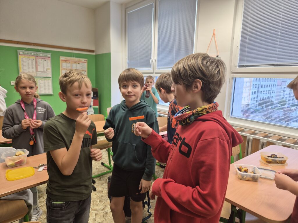 Nechyběla ani ochutnávka ovoce a zeleniny – a to nejen se zavřenýma očima pro ty odvážnější! Byla to zábava a zároveň zajímavý způsob, jak poznat nové chutě. Někteří poprvé v životě ochutnali dračí ovoce či mochyni.