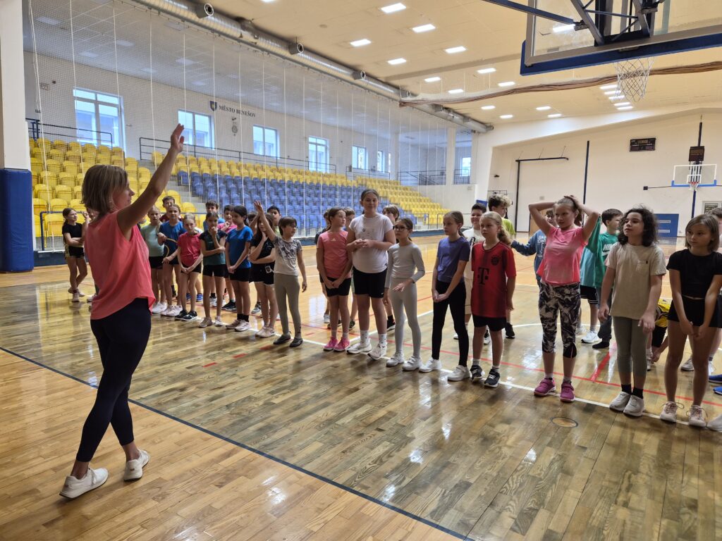 Nechyběl ani pohyb. Někteří z nás se vydali protáhnout na hřiště a také jsme si v tělocvičně zacvičili pod vedením paní trenérky, Lenky Křížové.