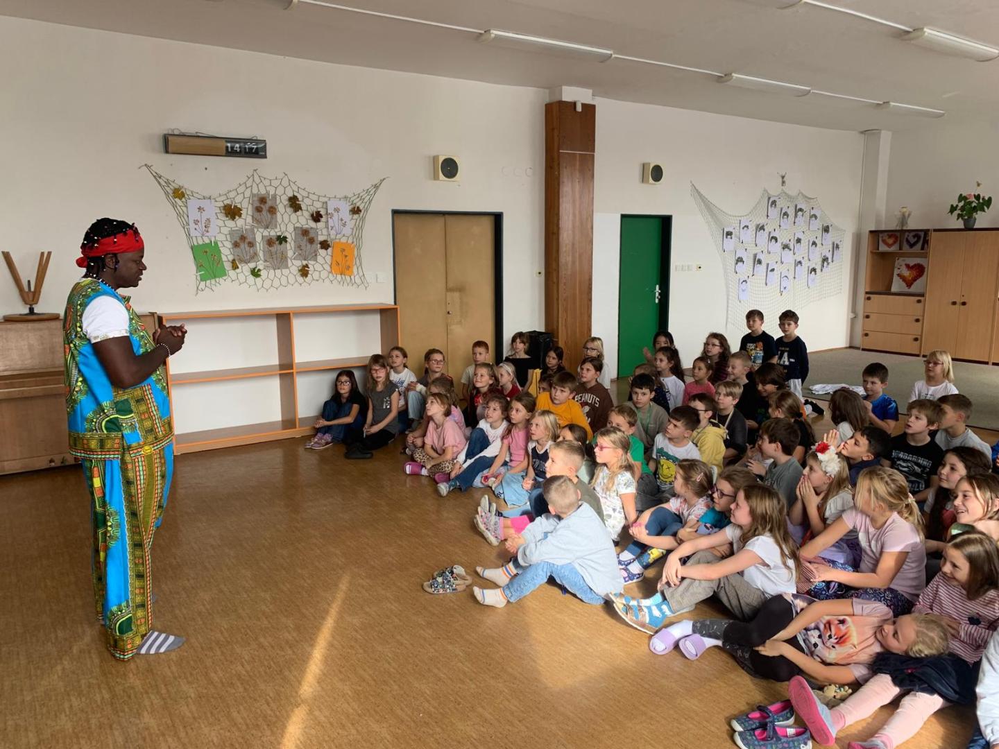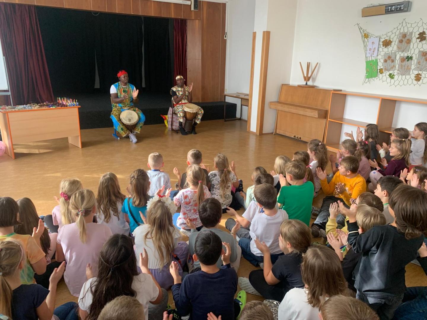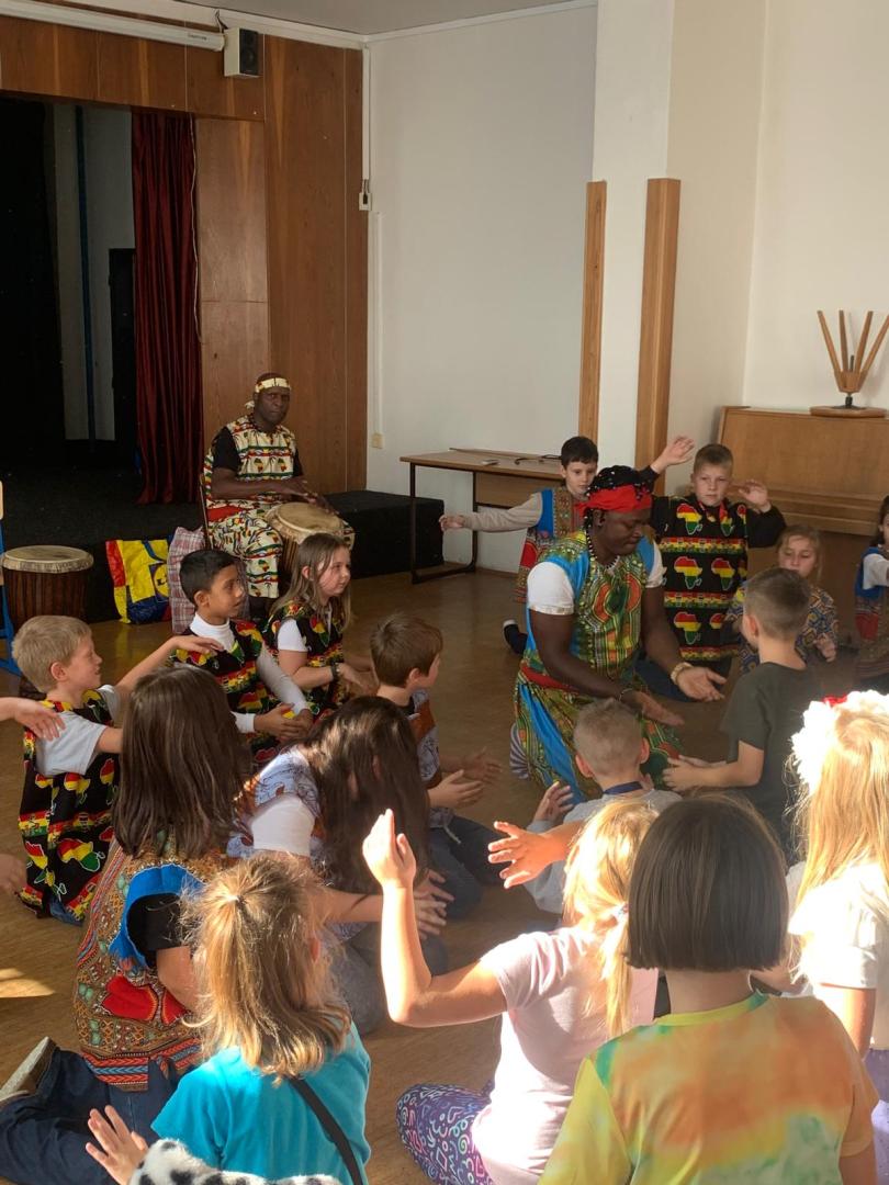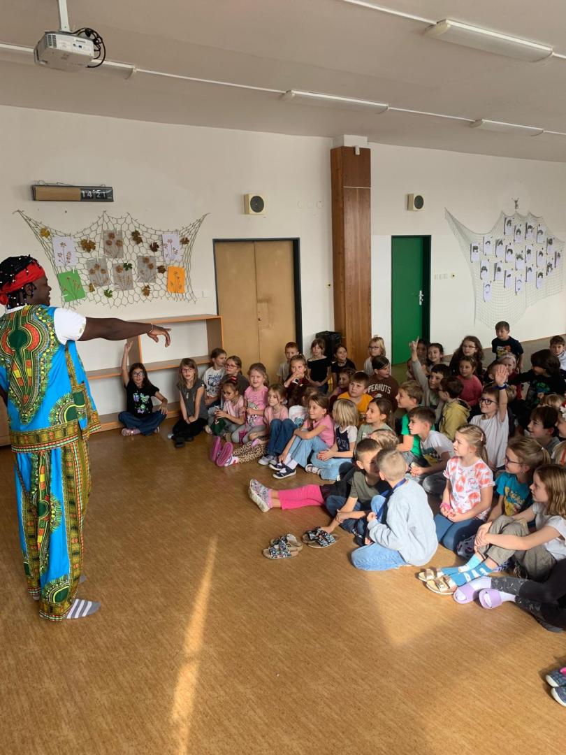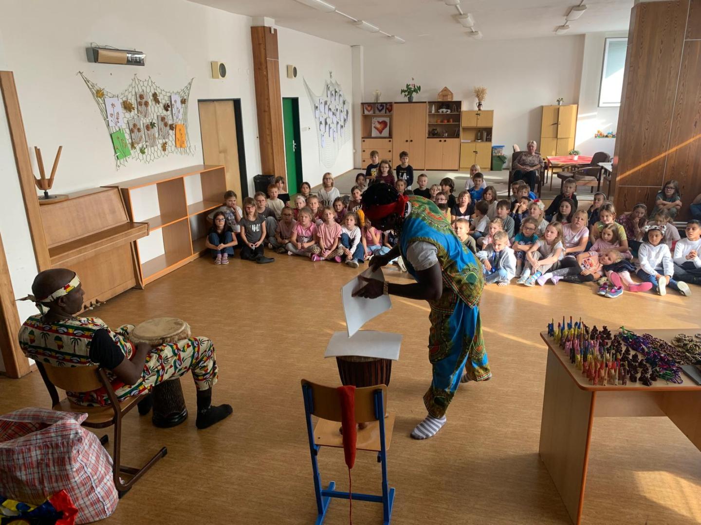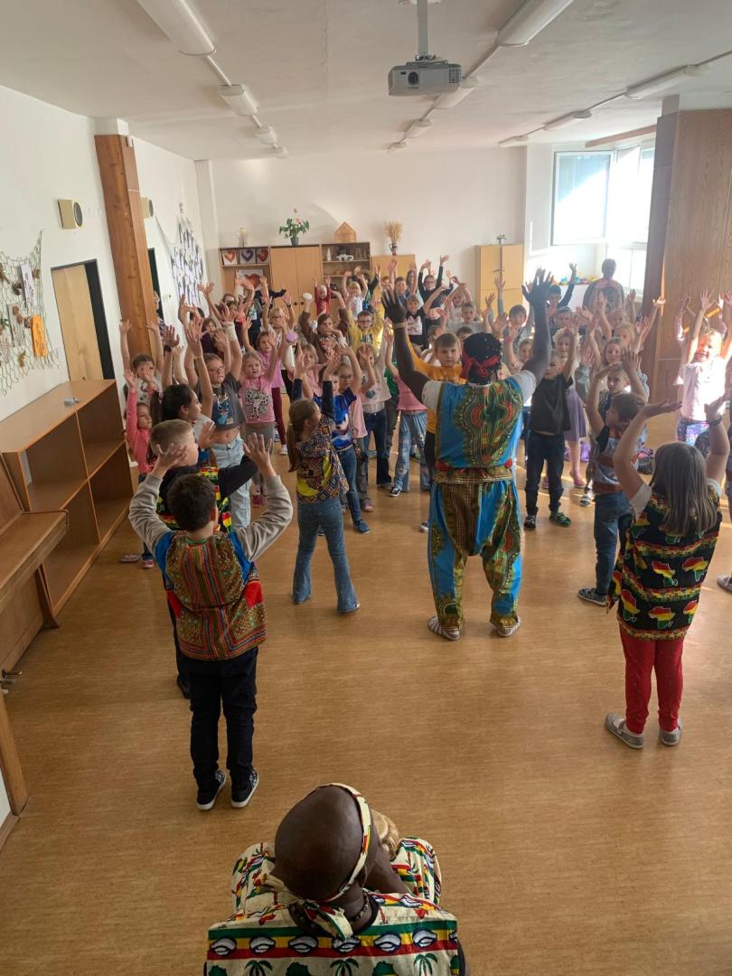 V úterý 14. října si děti z 2. až 4. tříd užily Pásmo africké kultury. Po úvodním povídání o Africe následovala ukázka autentické folklórní hudby – bubnování a africké písně. Program byl zakončen soutěží v rytmickém tanci, do které se děti s radostí zapojily.