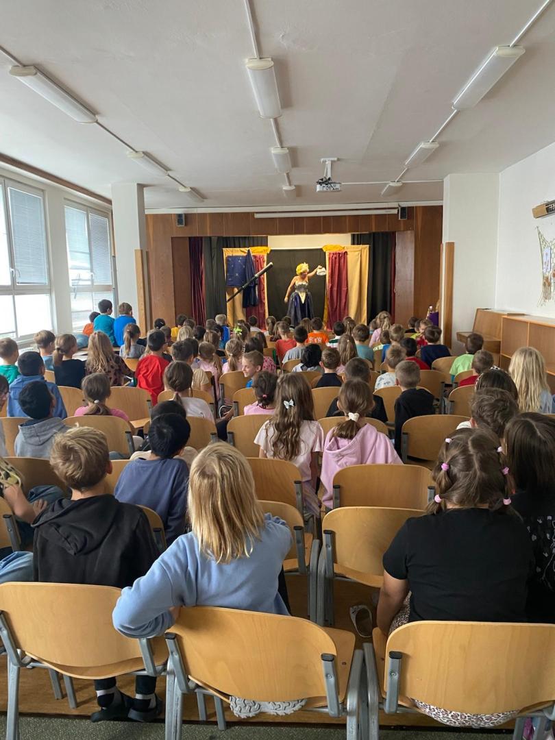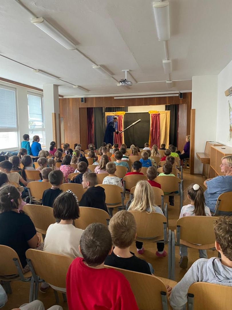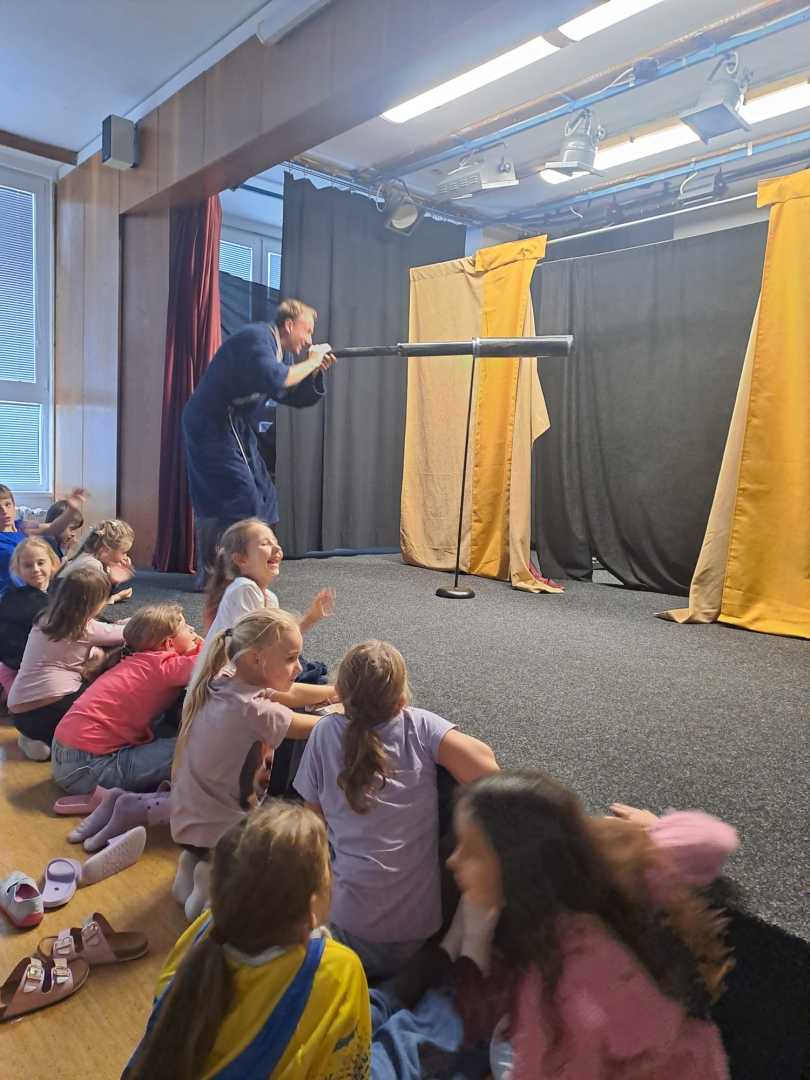 Ve středu 22. října nás navštívilo Divadélko Kos s pohádkou „Pohádka s hvězdičkou“. Děti sledovaly příběh malé hvězdičky, která svítí na noční obloze a na zemi zažívá zářivá dobrodružství. Společně s dětmi poznává, že i ta nejmenší hvězdička může zazářit jako opravdová superstar. Nakonec se s pomocí dětí bezpečně vrací zpět na oblohu, kde je její pravé místo.