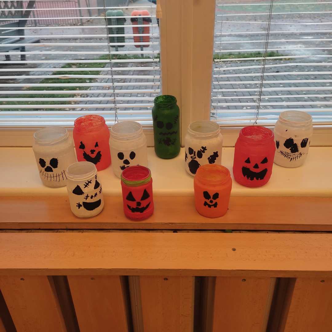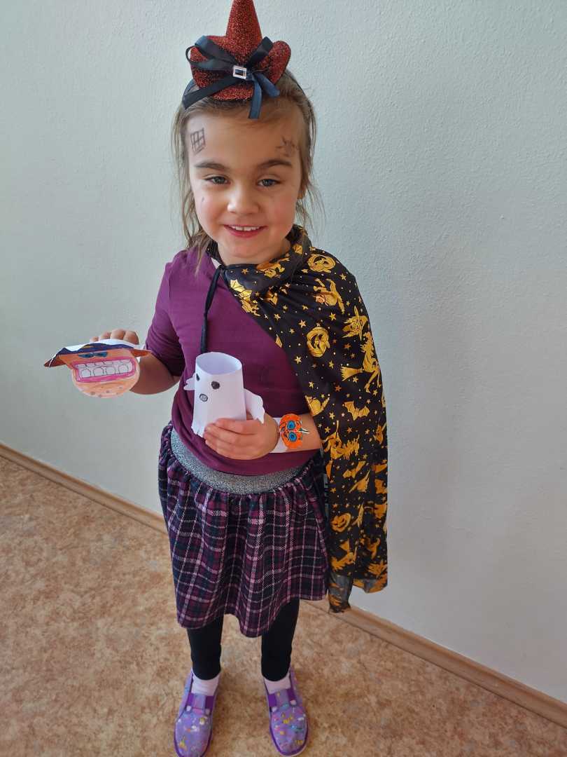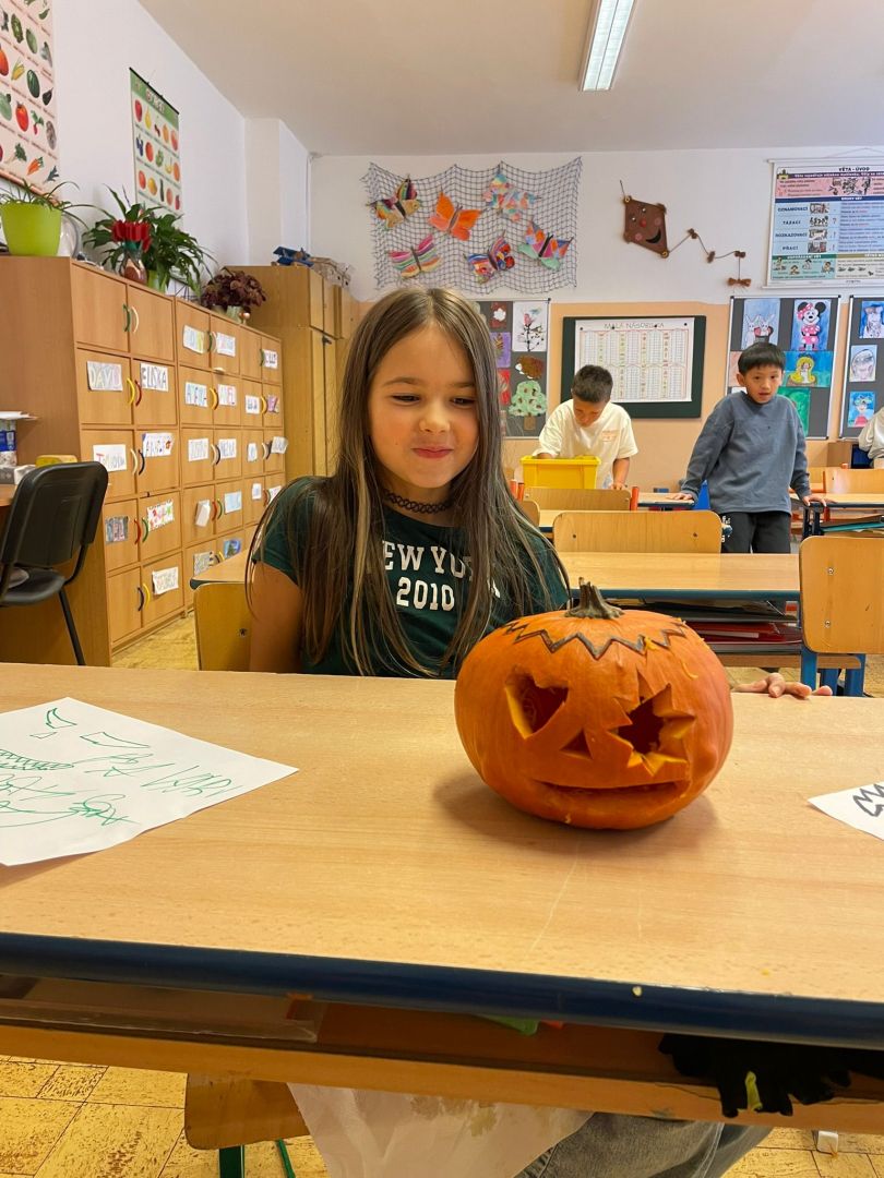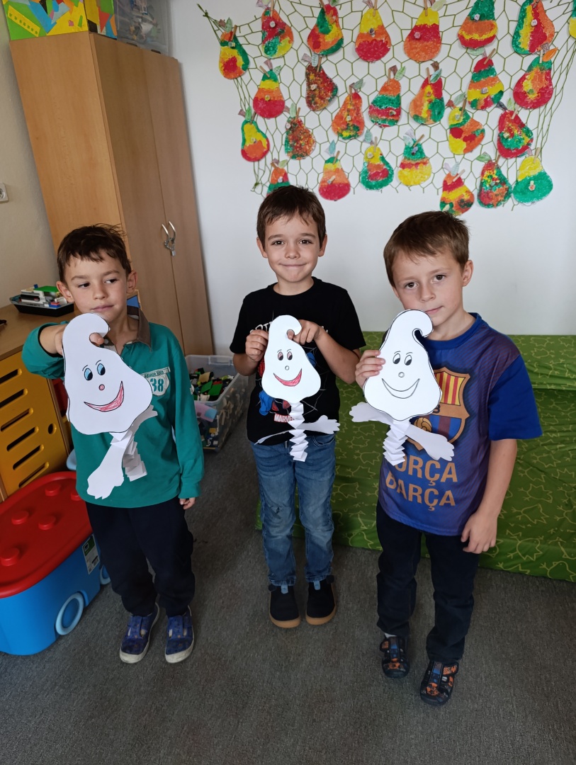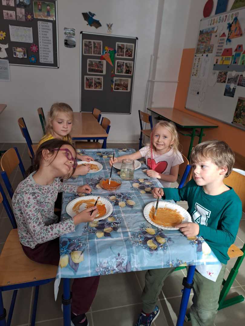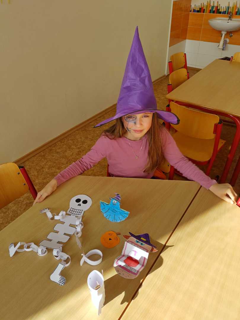 V závěru měsíce jsme se připravovali na Halloween – vyráběli jsme tematické dekorace, dlabali dýně a vyzdobili družiny podzimními i strašidelnými motivy.