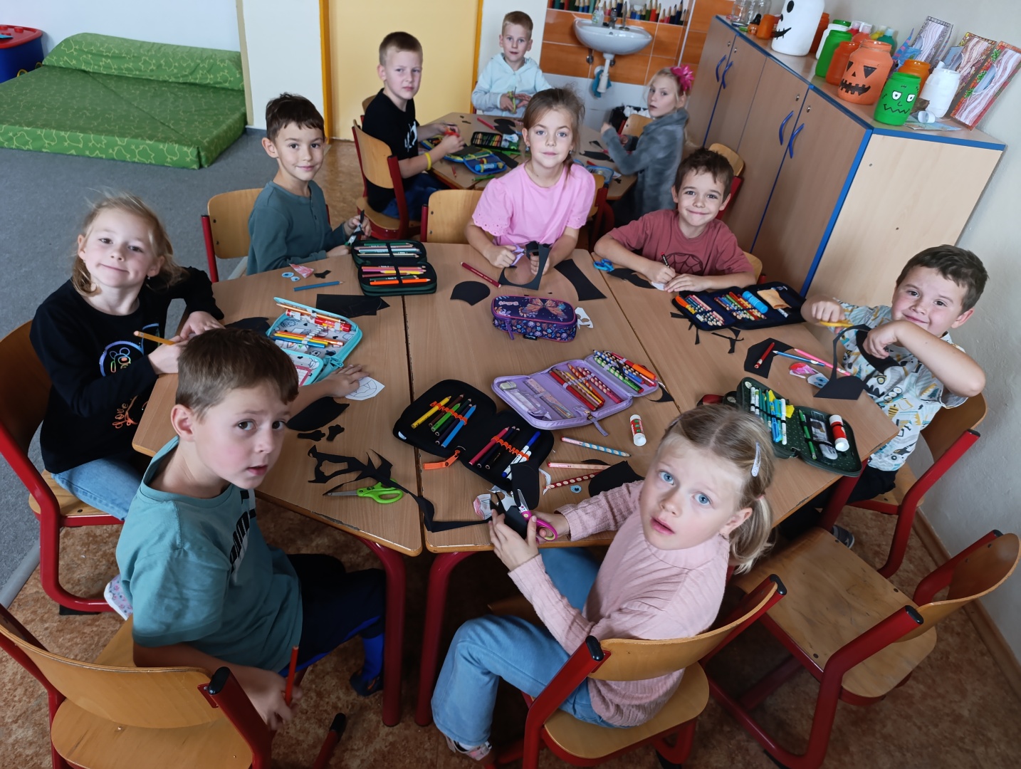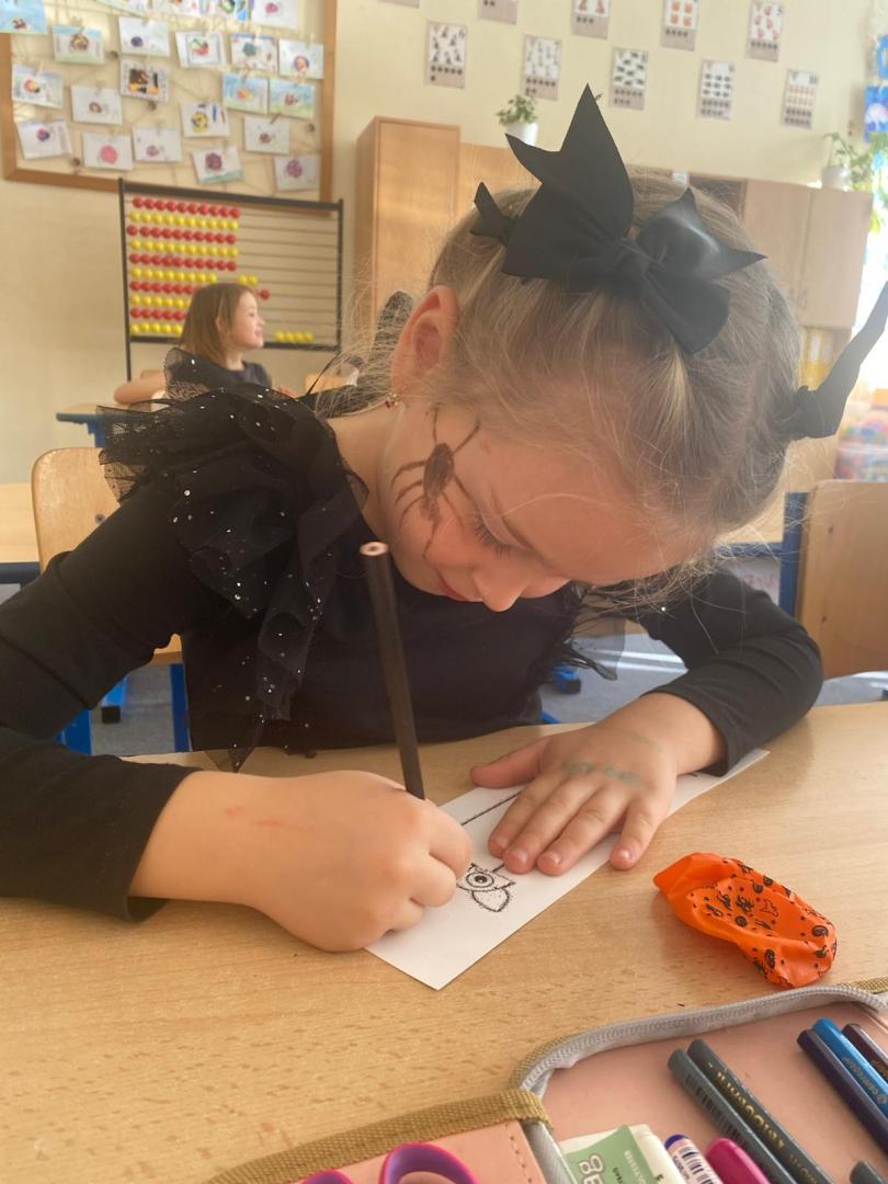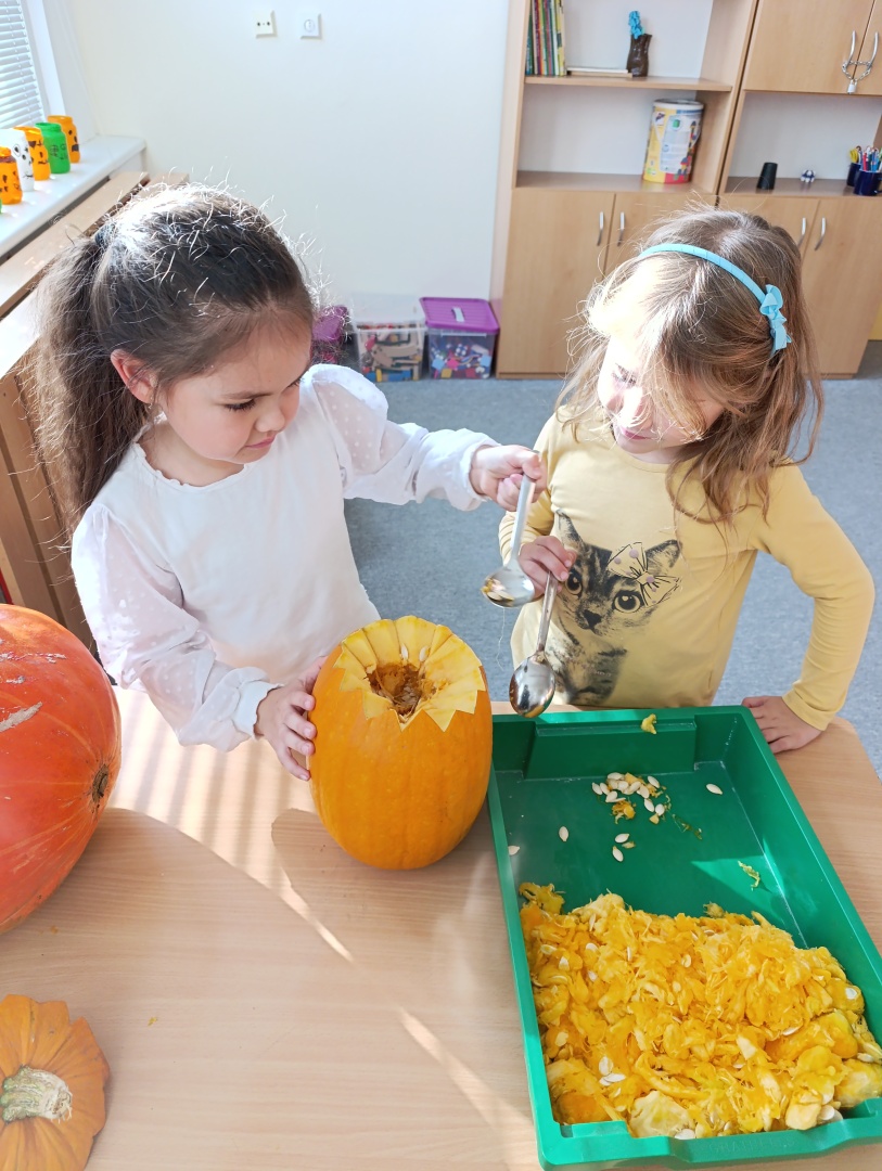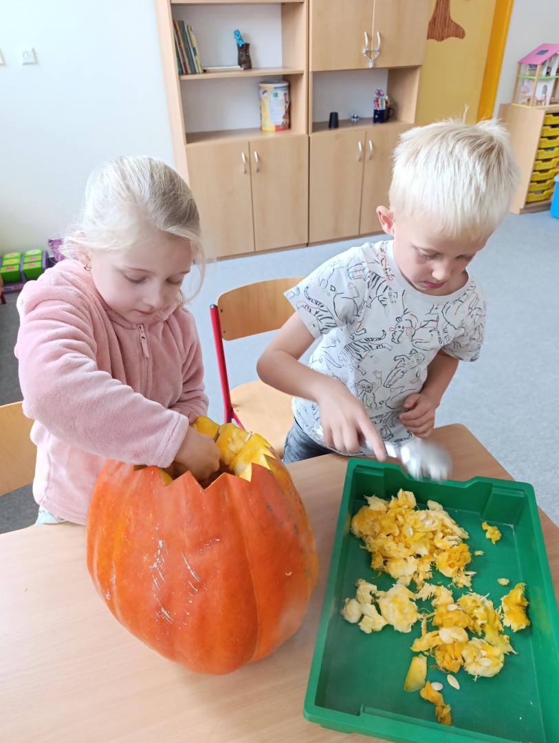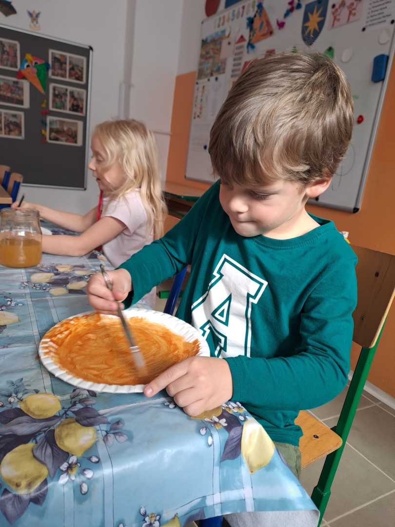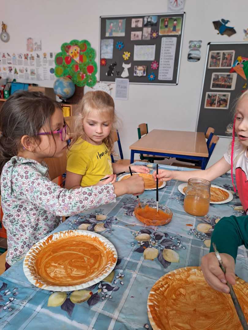 V závěru měsíce jsme se připravovali na Halloween – vyráběli jsme tematické dekorace, dlabali dýně a vyzdobili družiny podzimními i strašidelnými motivy.