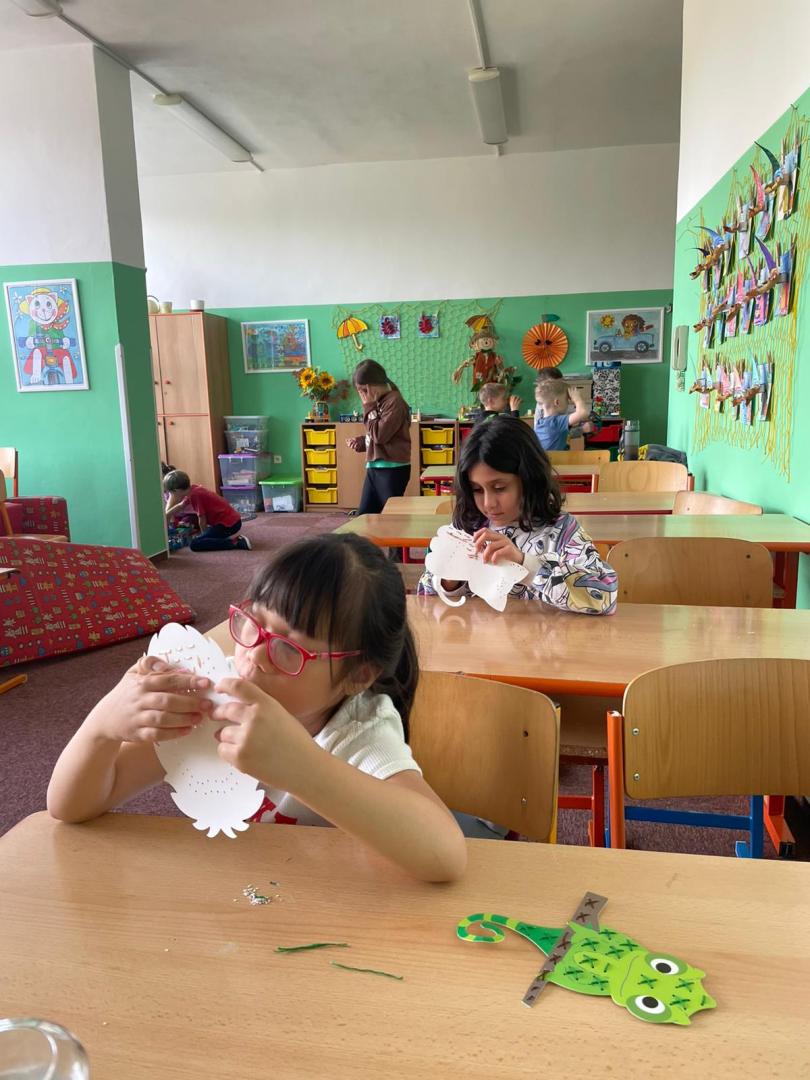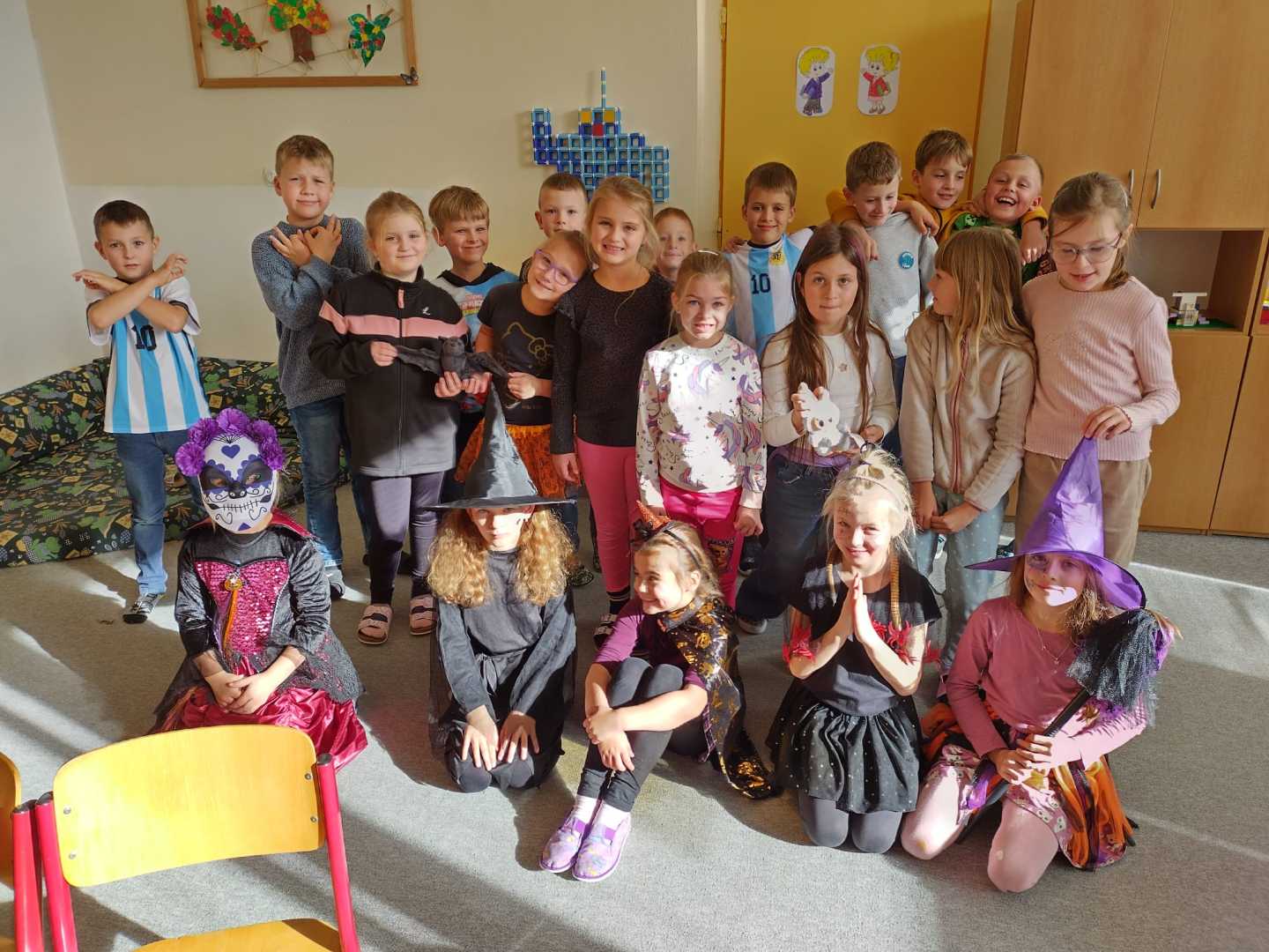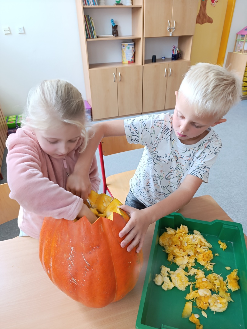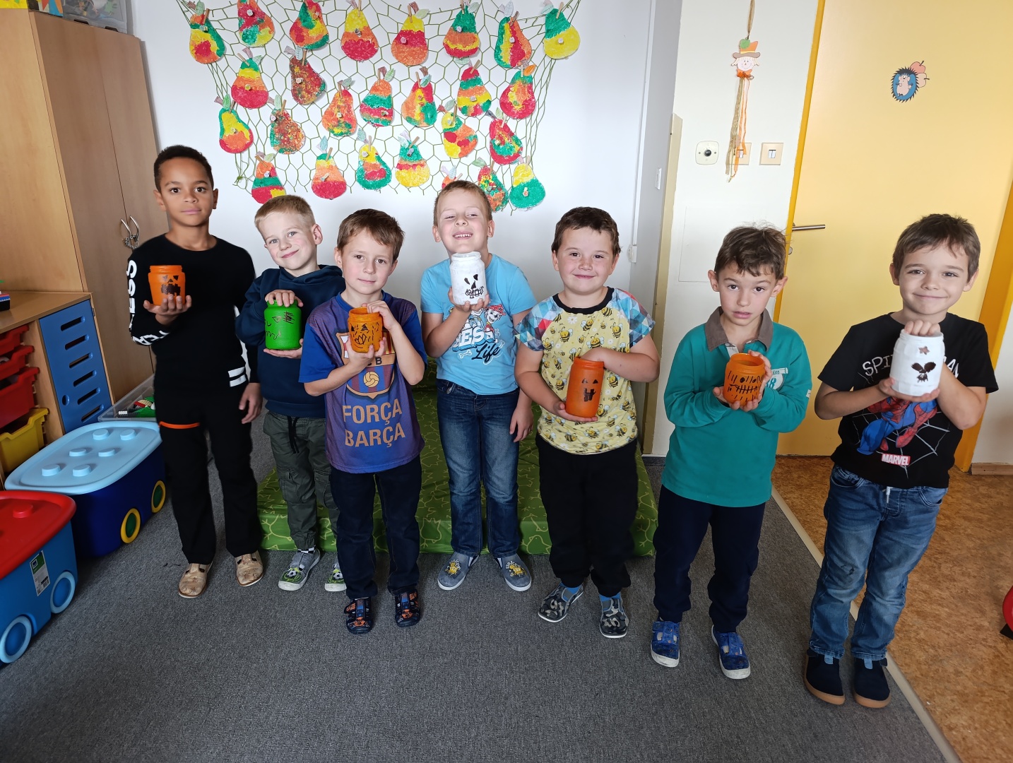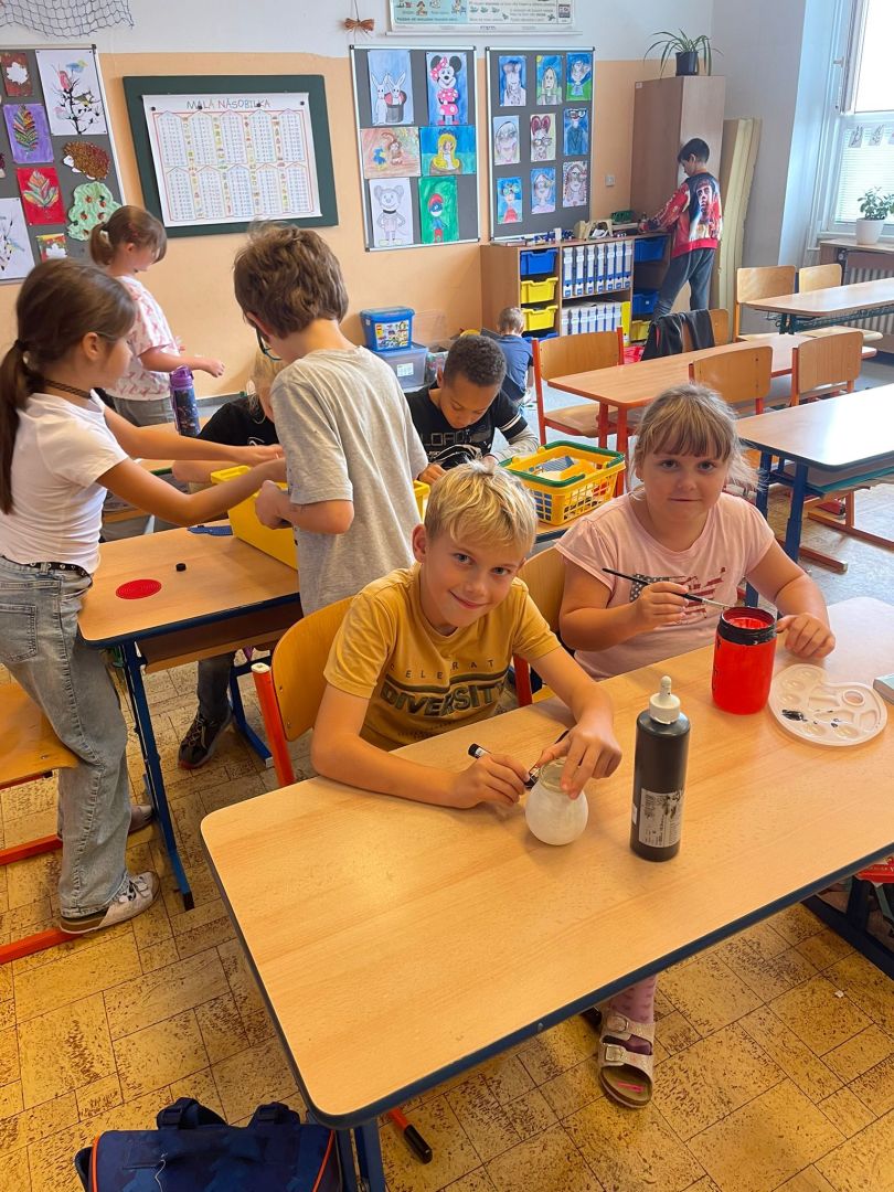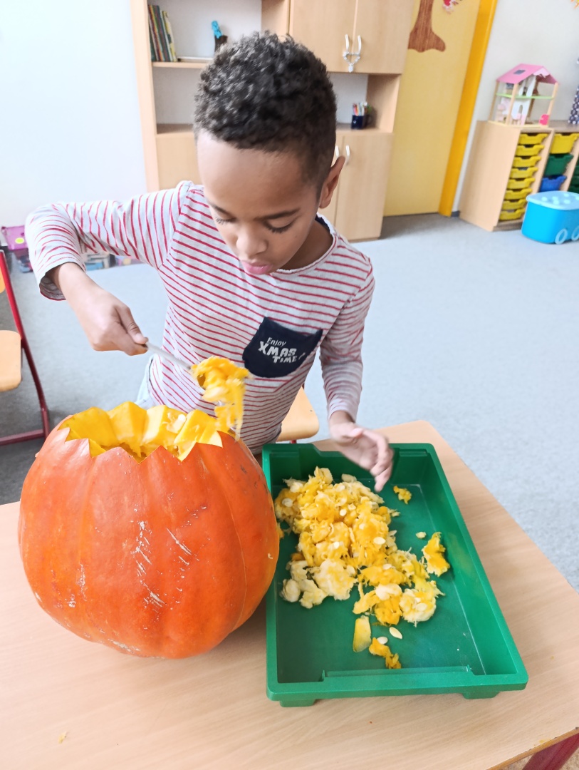 V závěru měsíce jsme se připravovali na Halloween – vyráběli jsme tematické dekorace, dlabali dýně a vyzdobili družiny podzimními i strašidelnými motivy.