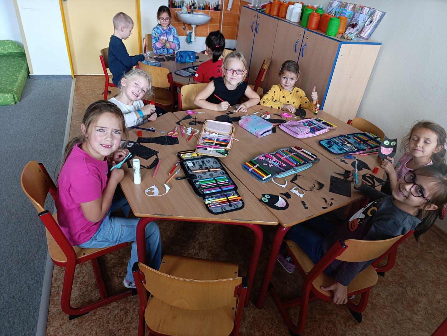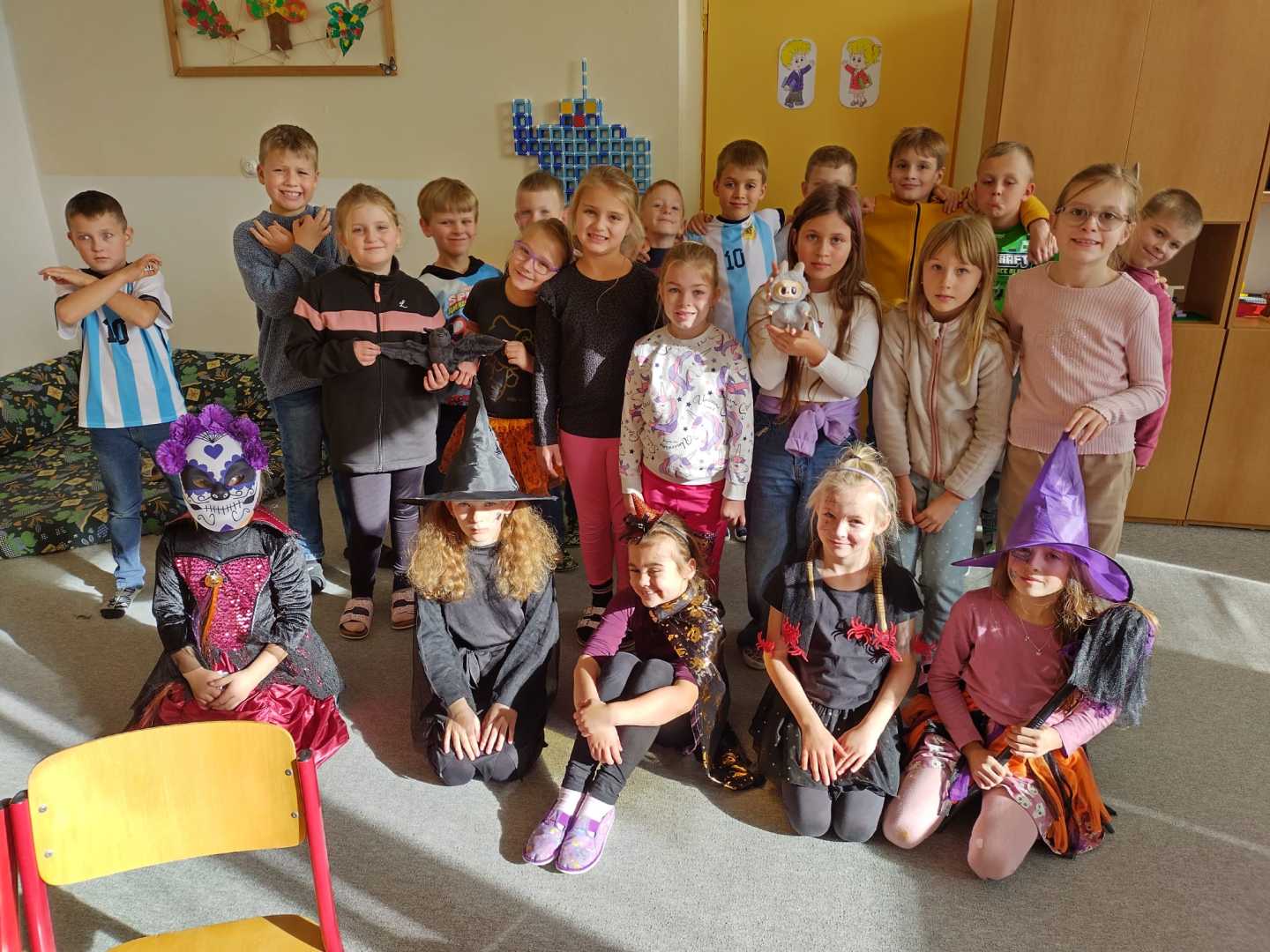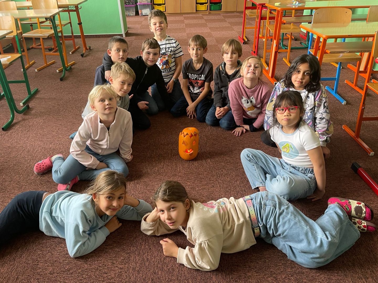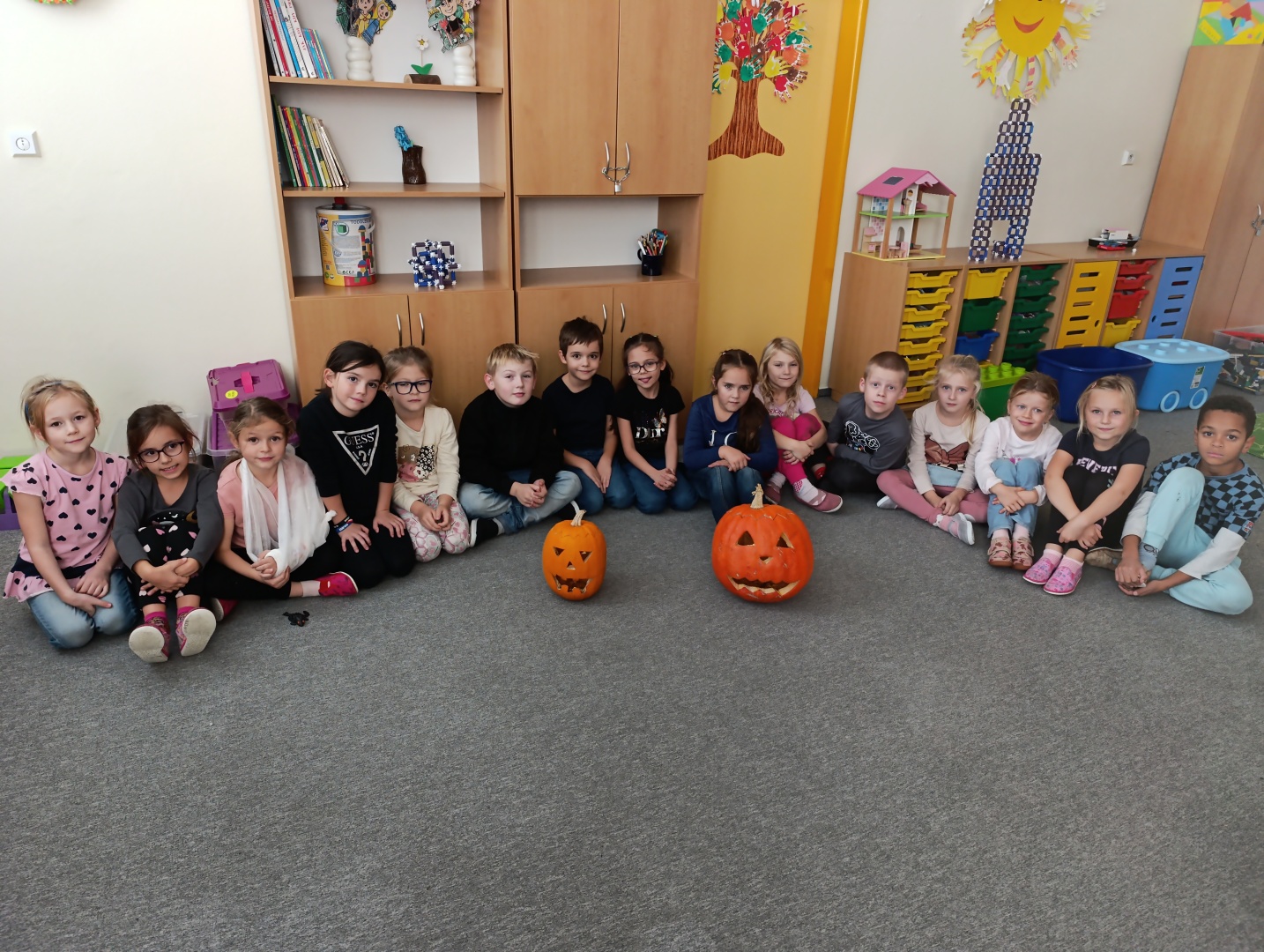 V závěru měsíce jsme se připravovali na Halloween – vyráběli jsme tematické dekorace, dlabali dýně a vyzdobili družiny podzimními i strašidelnými motivy.