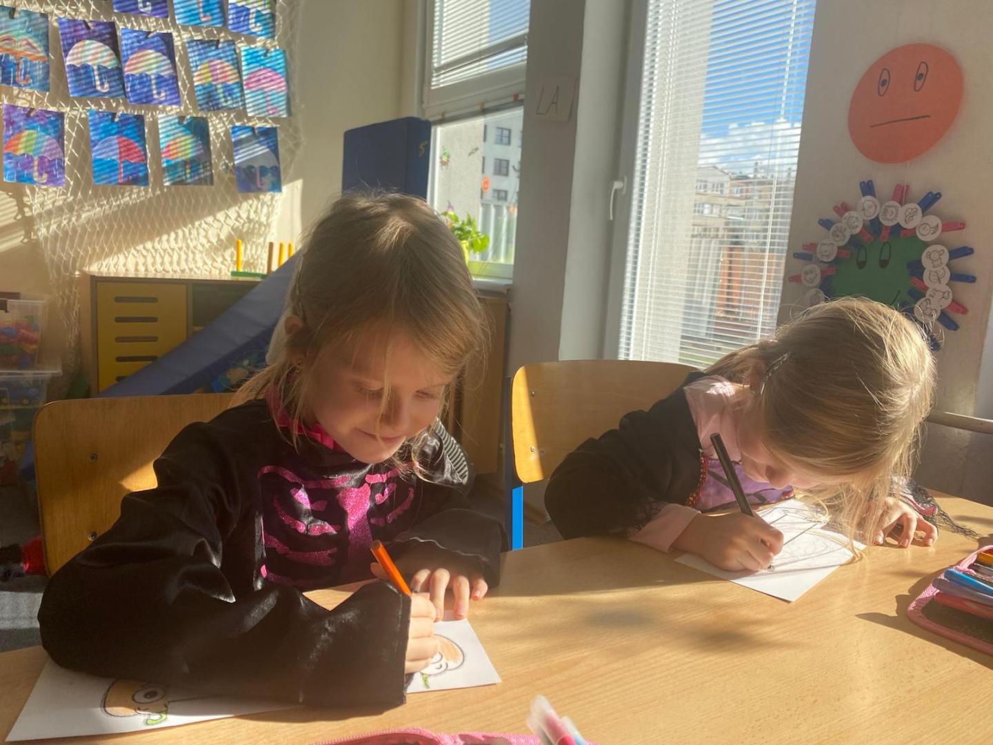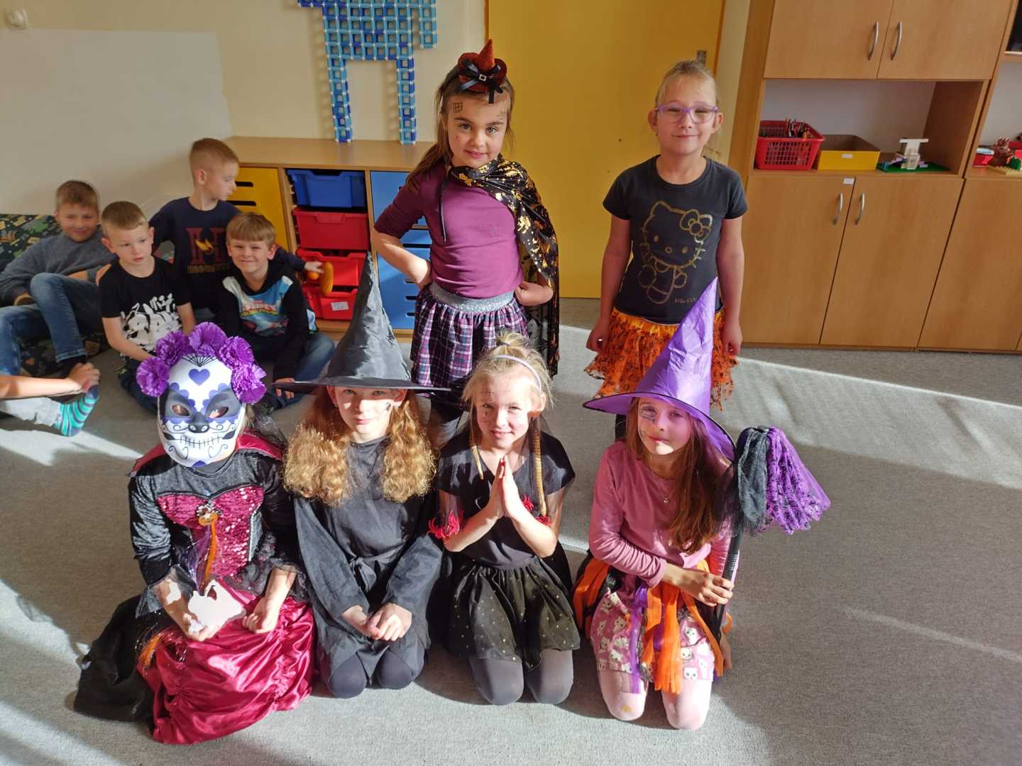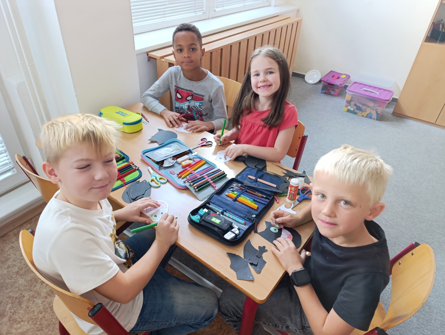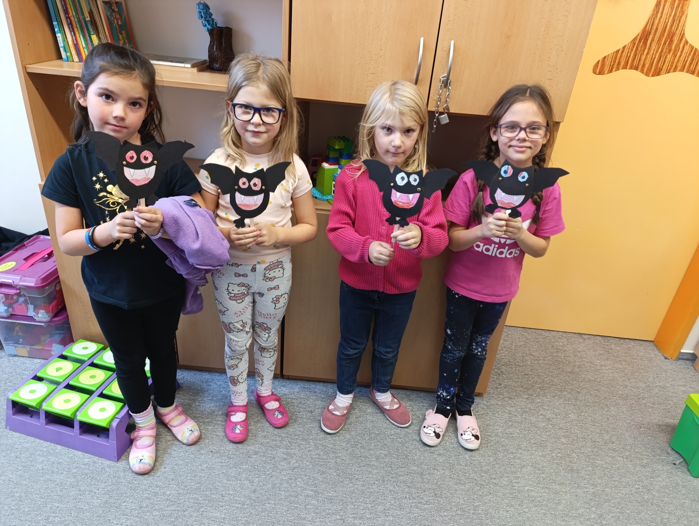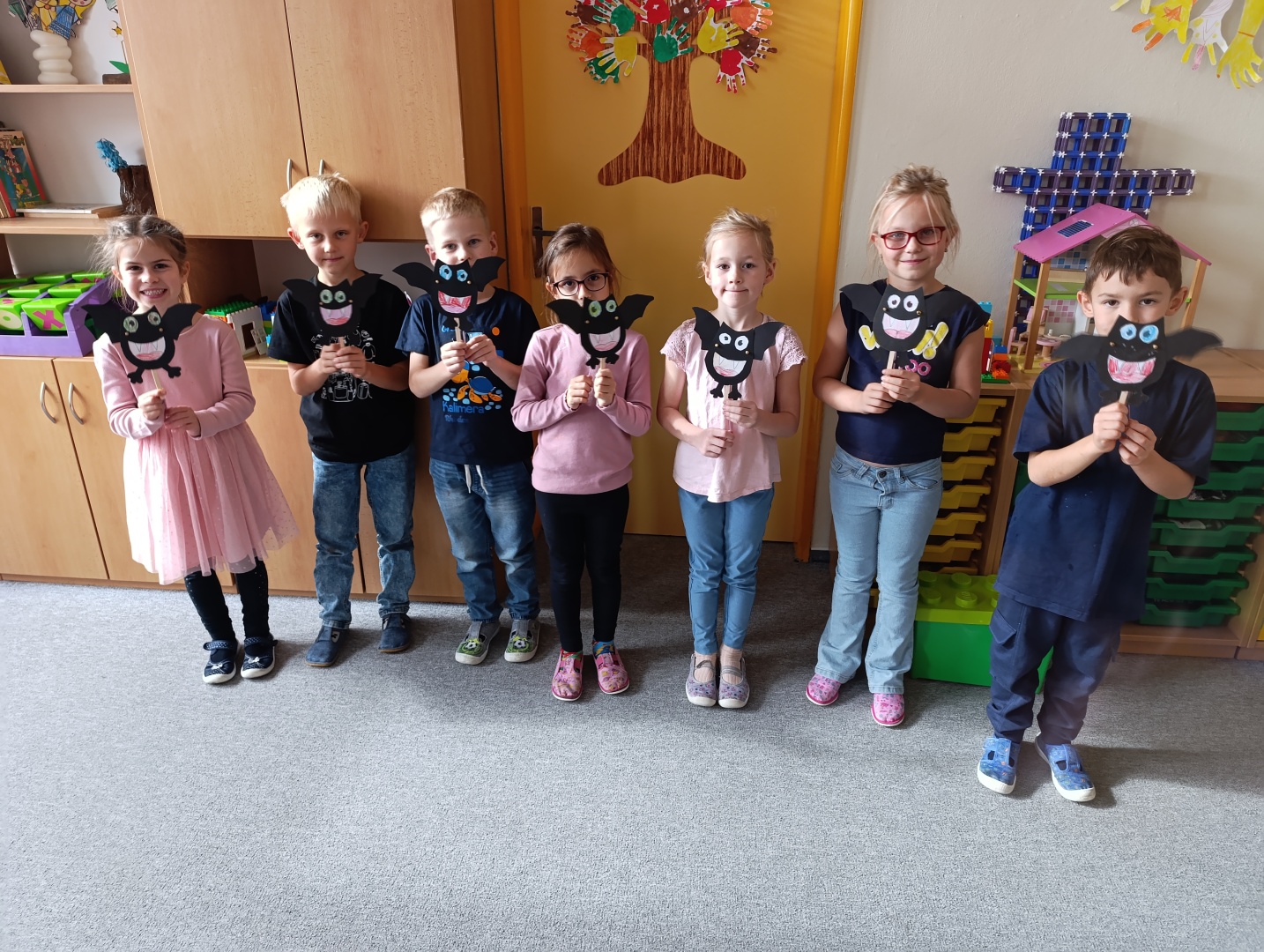 V závěru měsíce jsme se připravovali na Halloween – vyráběli jsme tematické dekorace, dlabali dýně a vyzdobili družiny podzimními i strašidelnými motivy.