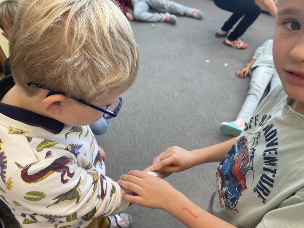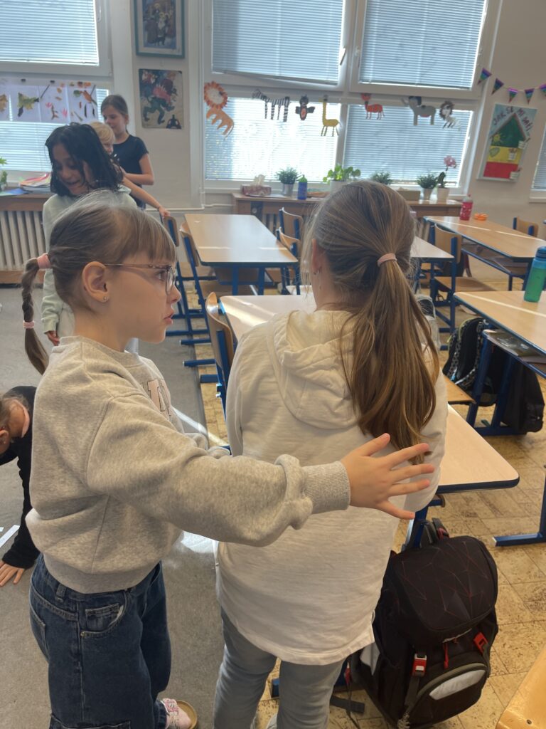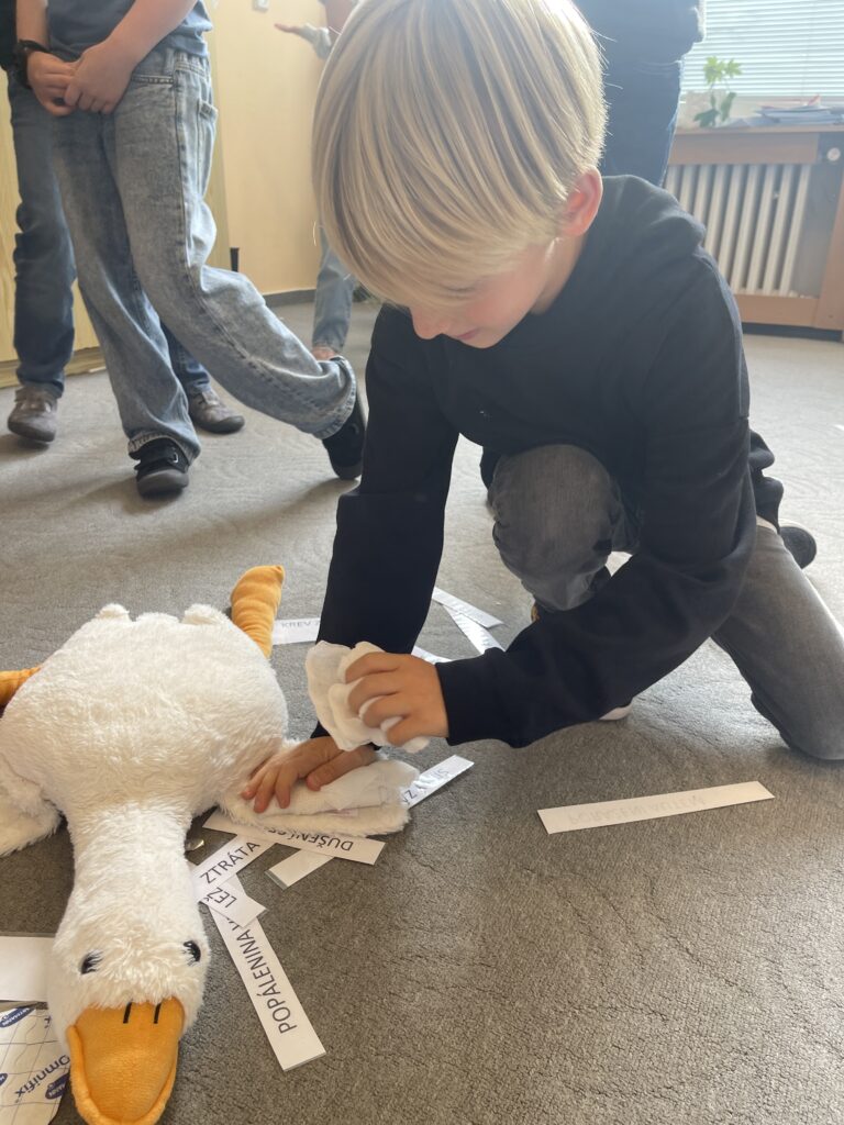 V říjnu se ve třídě 2. C v rámci projektu Týden zdravého životního stylu uskutečnil čtyřhodinový kurz první pomoci. Po krátké teorii se žáci s nadšením pustili do praktické části, kde si mohli vše sami vyzkoušet – od zastavení krvácení pomocí tlakového obvazu přes stabilizovanou polohu až po srdeční masáž. Zvládli také Heimlichův i Gordonův manévr. Součástí výuky byl i nácvik volání na záchrannou službu – děti si vyzkoušely, jak správně reagovat v krizové situaci.
