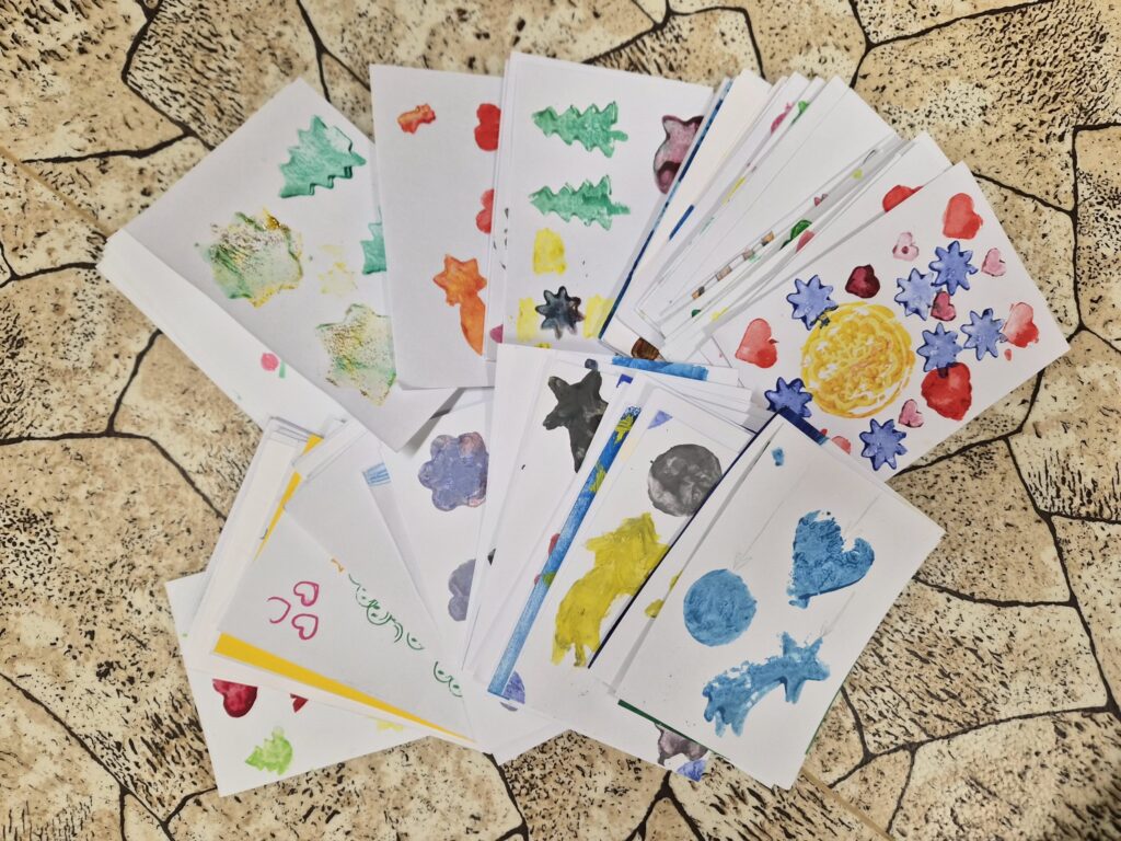 V tiskárenské dílně jsme pracovali s různými materiály a vznikla krásná přáníčka, která opět putovala k benešovským seniorům.