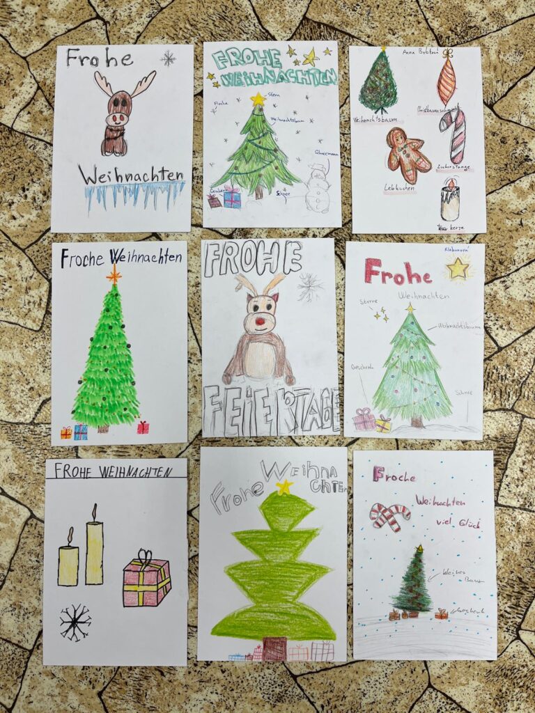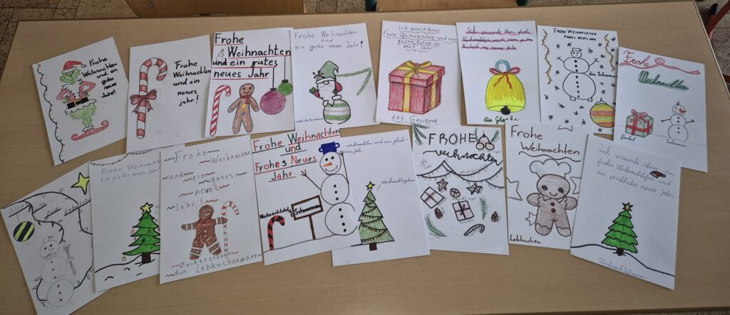 V předvánočním období jsme v hodinách německého jazyka s žáky osmých a devátých tříd pracovali na tematických projektech zaměřených na Vánoce. Cílem bylo nejen rozšířit slovní zásobu a procvičit jazykové dovednosti, ale také se seznámit s vánočními tradicemi v německy mluvících zemích.