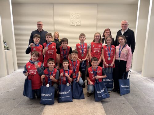 Ve čtvrtek 18. prosince byli naši žáci oceněni v Obřadní síni Města Benešova za své sportovní úspěchy, aktivní přístup k mezinárodním projektům a snahu pomáhat. Na slavnostní akci se sešli zástupci z prvního i druhého stupně naší školy. Prvostupňoví žáci získali pod vedením trenéra Milana Rýdla stříbrnou medaili v Jr. NBA – v celorepublikové basketbalové lize, kde podlehli pouze týmu z Písku. Z rukou pana místostarosty Jakuba Hostka a paní Ivany Kárové, vedoucí Odboru školství, sportu a kultury, tak zaslouženě převzali dárky a poděkování za reprezentaci školy, ale i města a kraje.