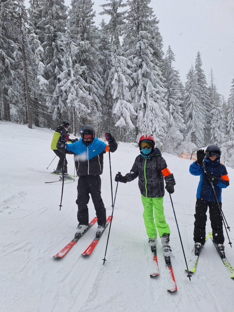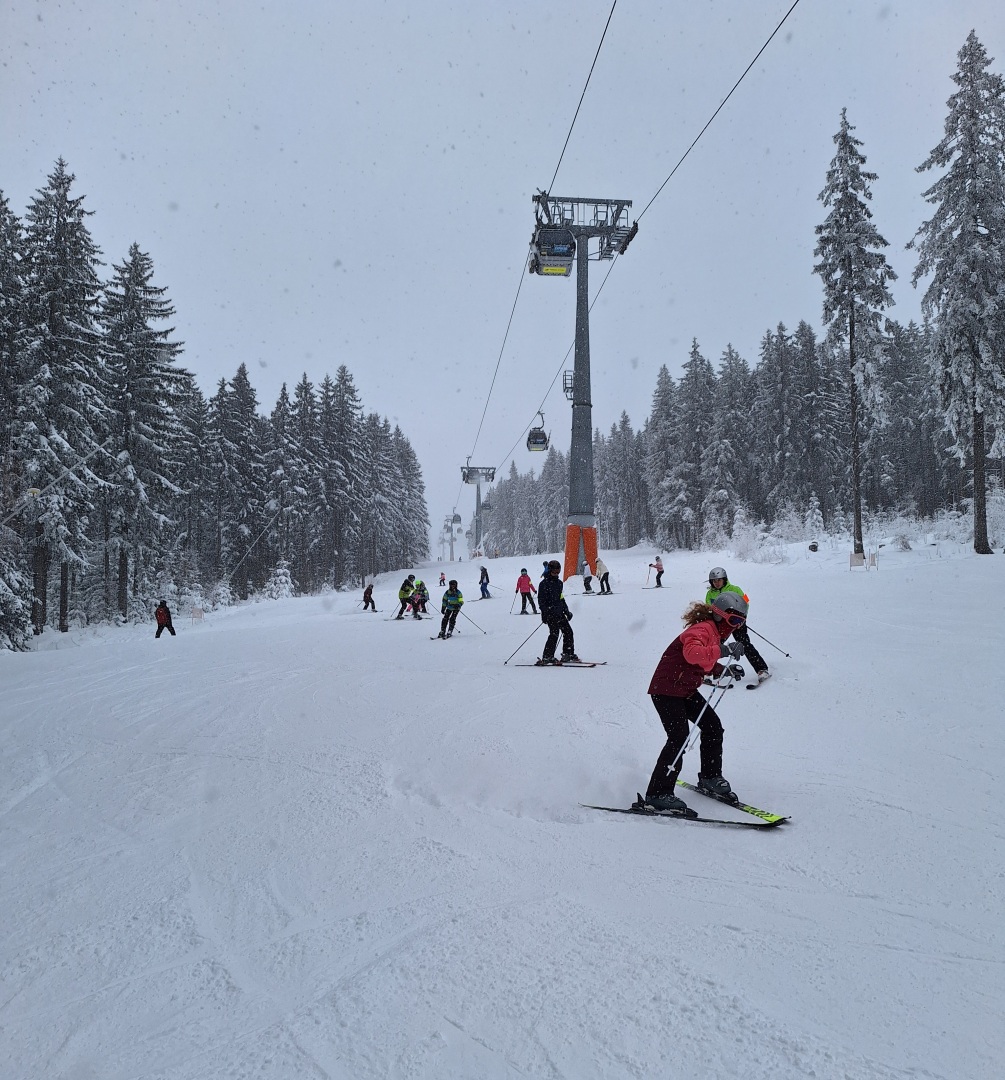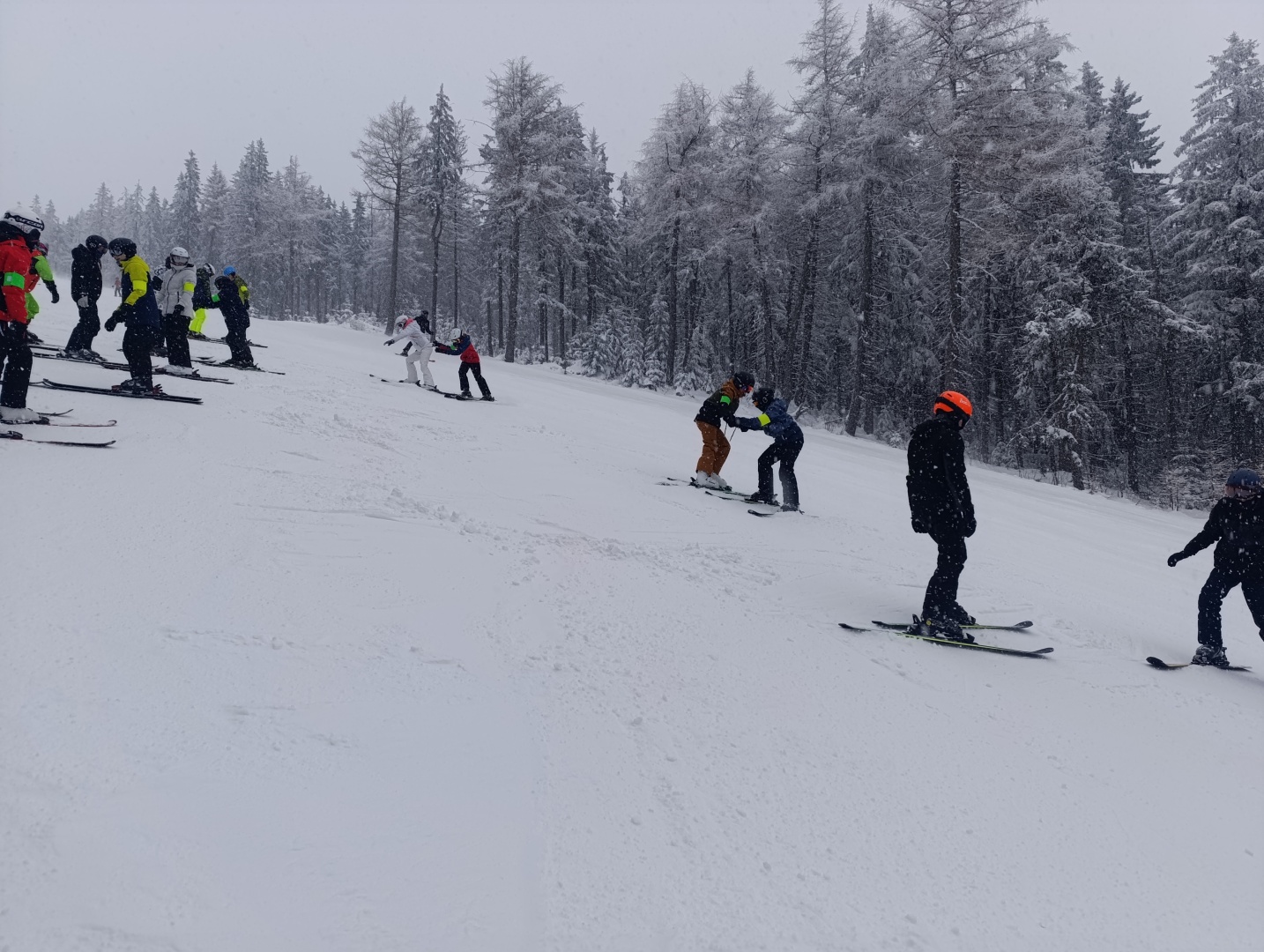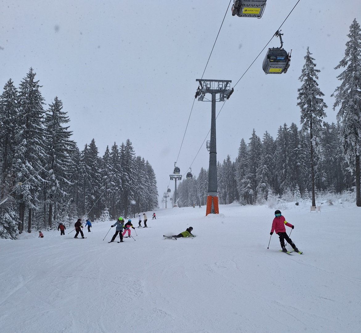 Dnes se klimatické podmínky pro lyžování zásadně změnily. Počasí nabralo směr k extrémním srážkám, nikoli však v Krkonoších. Zde napadlo pár centimetrů sněhu. Na druhou stranu ve skiareálu intenzivně zasněžovali, a tak jsme si sněhových srážek opravdu užili. Navíc ve vyšších partiích padla mlha, a tak jsme děti na svahu sledovali jak ostříži, abychom zajistili jejich bezpečí. A povedlo se! Všichni sjezdovali jako diví a celý den si opravdu užili. Jak už jsem zmínil, rozdíl mezi lyžaři a bývalými nelyžaři se úplně smazal, jelikož jsme se téměř všichni ocitli na stejném svahu.