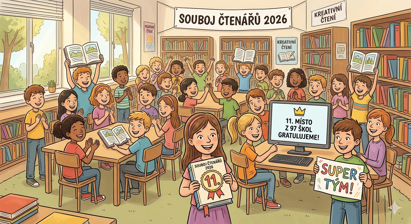 Naši šesťáci se v pátek 10. 4. 2026 zúčastnili on-line kola soutěže Souboj čtenářů 2026. Museli prokázat nejen znalost obsahu pěti soutěžních knížek, ale také předvést, že textu porozuměli, četli chytře a dokázali vyvodit třeba i ne přímo zmíněné souvislosti a znalosti.