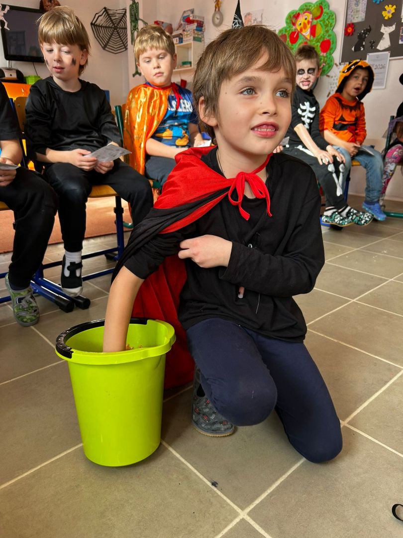 Páteční strašidelný den se v přípravce vydařil. Třídu navštívili upíři, čarodějové, čarodějnice, dýně, kočičky a Halloweenská bojovka mohla začít. Děkujeme maminkám, které myslely na mlsné jazýčky všech strašidel.