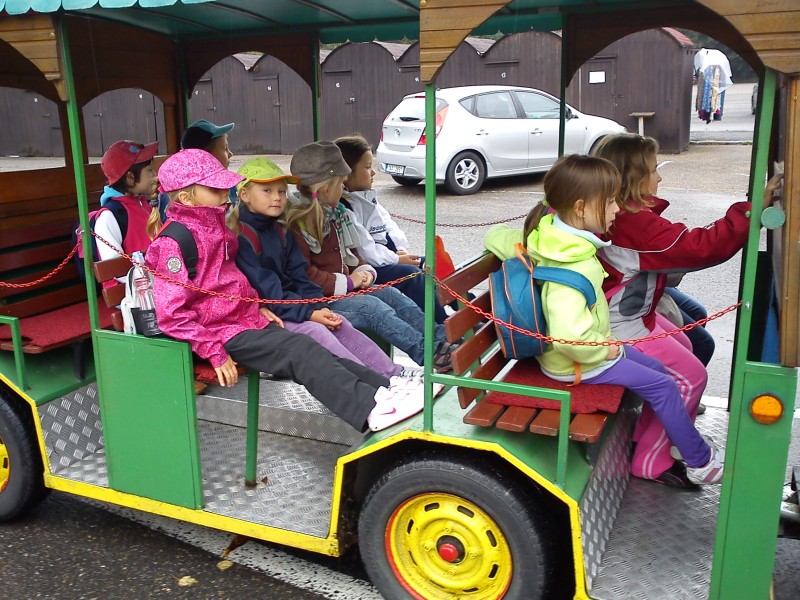 Z parkoviště pod zámkem Konopiště nás svezl vláček. Pan řidič si jízdu skutečně vychutnával a povozil nás znamenitě. Medvěd zprvu ve výběhu nebyl ,a tak jsme se ho na radu Elišky V. pokusili vylákat na vdolky, které jsme mu schovali od pondělního oběda. Situace nevypadala zpočátku nijak růžově. Když už jsme ale chtěli odejít, přece jen méďa vylezl:) Vdolky mu zachutnaly a chtěl další. Pak nepohrdl ani jablíčky a mrkvičkou od dětí. Mnozí z nás viděli medvěda Jiřího úplně poprvé ,čímž byla naše výprava o hodně veselejší.