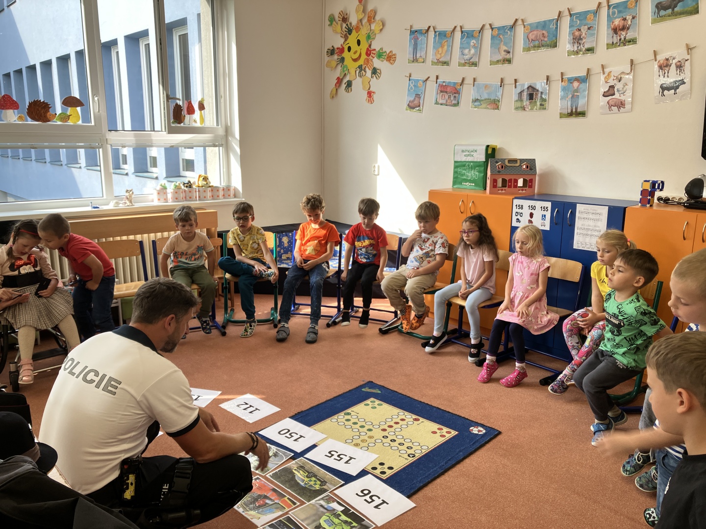 V pondělí 8. 9 2025 nás v rámci preventivního programu navštívil policista pan Bican. Děti se dozvěděly něco nového o práci policistů a jejich vybavení. Také byly poučeny, jak si chránit zdraví své a kamarádů.