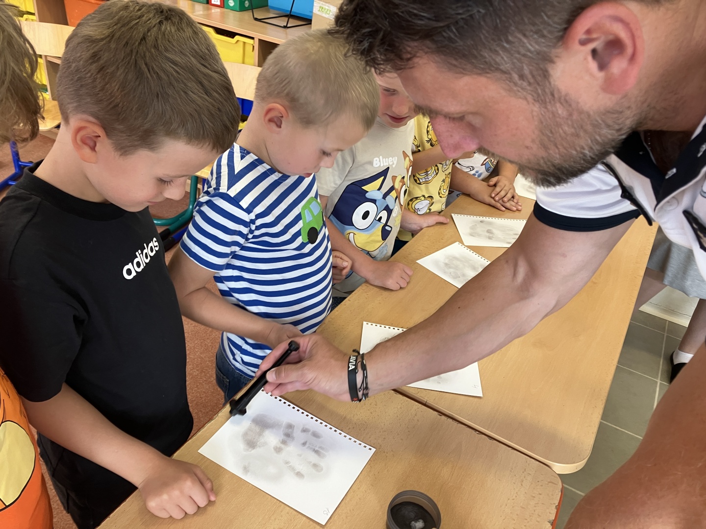 V pondělí 8. 9 2025 nás v rámci preventivního programu navštívil policista pan Bican. Děti se dozvěděly něco nového o práci policistů a jejich vybavení. Také byly poučeny, jak si chránit zdraví své a kamarádů.