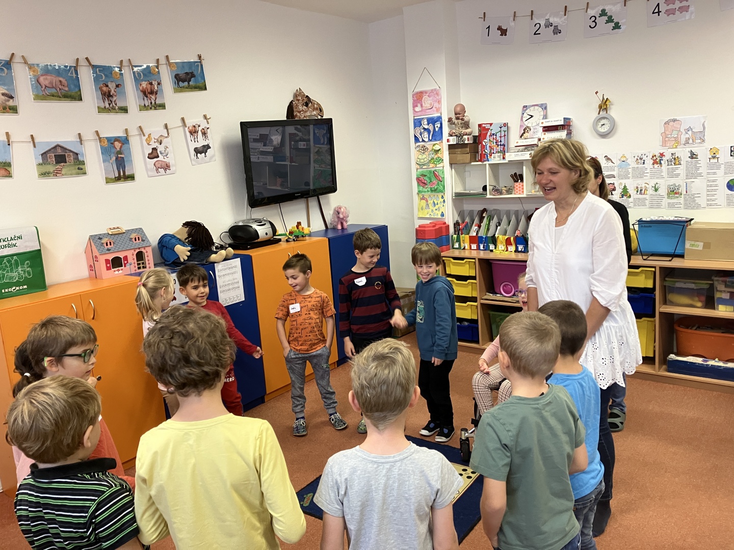 V pátek 26.9.2025 k nám přijela paní lektorka z Etických dílen a spolu s loutkou Arnoštem jsme si hráli. Program byl zaměřený na posílení spolupráce, ohleduplnosti, trpělivosti a zvládání konfliktních situací. Prostřednictvím her, popletené pohádky, písničky a divadla s plyšáky si děti vše vyzkoušely. Program se jim moc líbil a už se těší na prosincové pokračování.