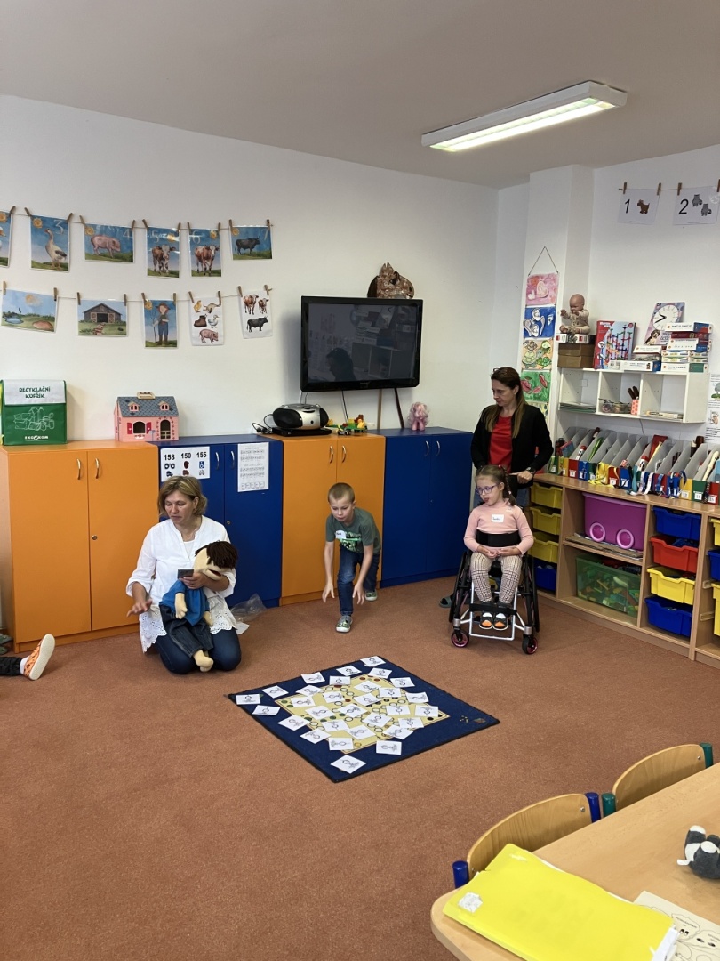 V pátek 26.9.2025 k nám přijela paní lektorka z Etických dílen a spolu s loutkou Arnoštem jsme si hráli. Program byl zaměřený na posílení spolupráce, ohleduplnosti, trpělivosti a zvládání konfliktních situací. Prostřednictvím her, popletené pohádky, písničky a divadla s plyšáky si děti vše vyzkoušely. Program se jim moc líbil a už se těší na prosincové pokračování.