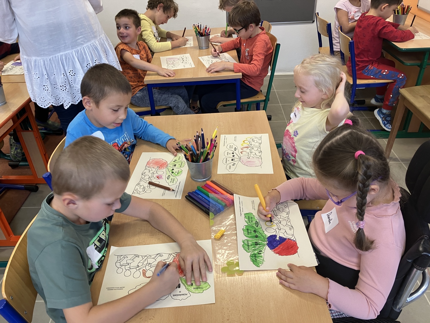 V pátek 26.9.2025 k nám přijela paní lektorka z Etických dílen a spolu s loutkou Arnoštem jsme si hráli. Program byl zaměřený na posílení spolupráce, ohleduplnosti, trpělivosti a zvládání konfliktních situací. Prostřednictvím her, popletené pohádky, písničky a divadla s plyšáky si děti vše vyzkoušely. Program se jim moc líbil a už se těší na prosincové pokračování.