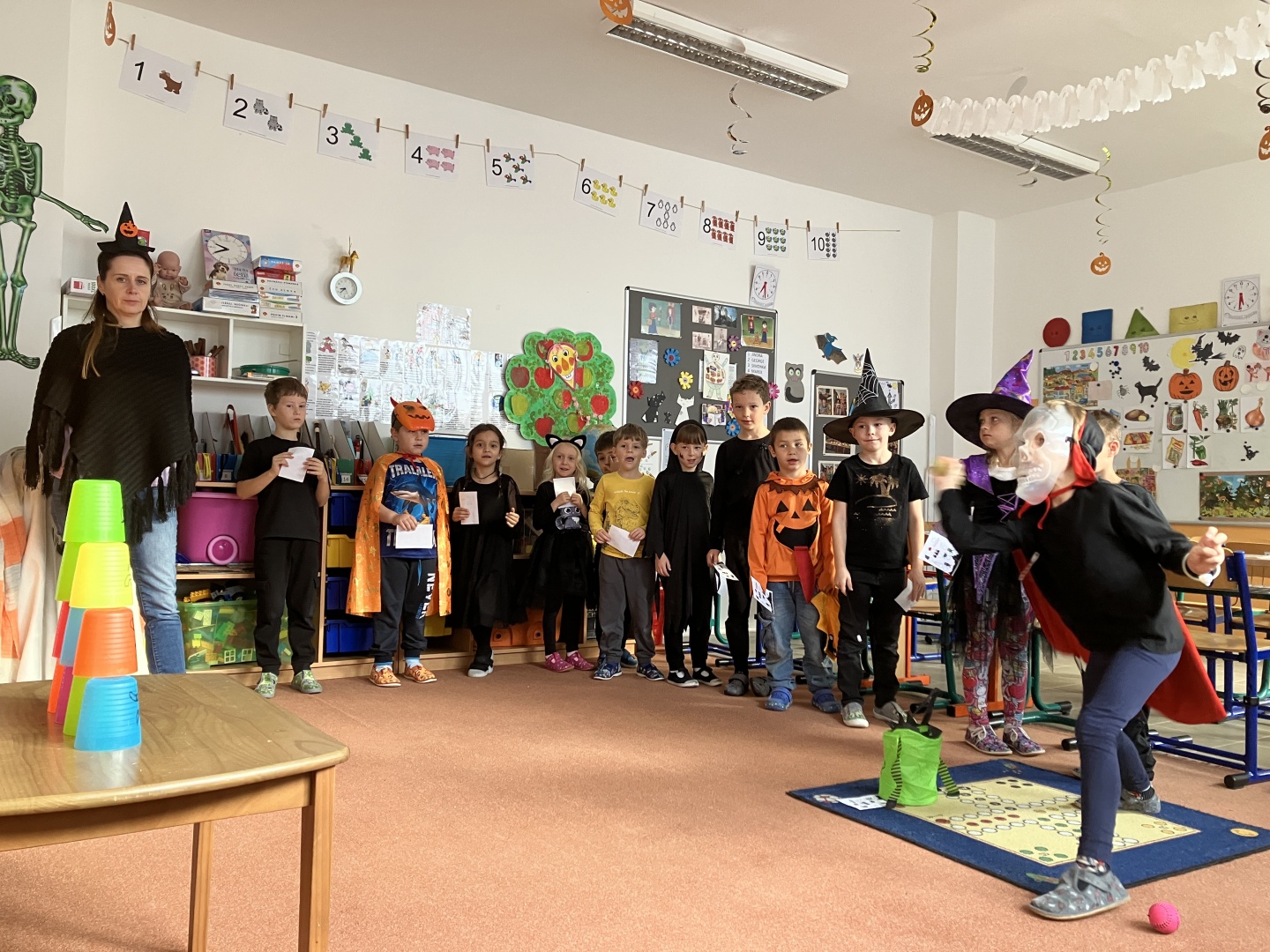 Páteční strašidelný den se v přípravce vydařil. Třídu navštívili upíři, čarodějové, čarodějnice, dýně, kočičky a Halloweenská bojovka mohla začít. Děkujeme maminkám, které myslely na mlsné jazýčky všech strašidel.