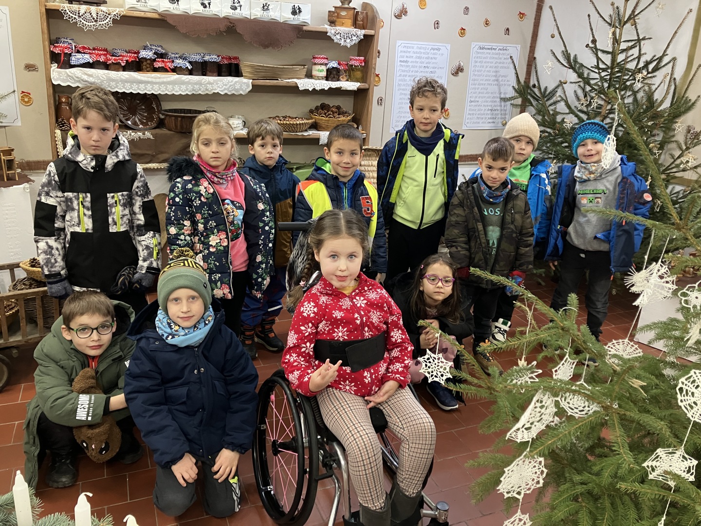 Už od konce listopadu se všechny děti těšily na kouzelný měsíc, kdy chodí Ježíšek. Protože jsme v tomto měsíci měli hodně aktivit, utekl nám adventní čas rychle. Vyzdobili jsme si třídu a v pátek 5.12. nás navštívil Mikuláš, čert a andělé. Ve čtvrtek 11.12. jsme pro rodiče připravili vánoční besídku, 12.12. jsme se zúčastnili vánočního vystoupení Kateřiny Ševidové v tělocvičně školy, ve středu 17.12. jsme navštívili vánoční výstavu v DDM, také jsme byli na procházce vánočně vyzdobeným Benešovem. Velkým překvapením pro nás bylo vítězství v soutěži O nejlépe vyzdobenou vánoční třídu. Poslední den před prázdninami byl v přípravce vánoční, s předáváním dárků a ochutnávkou cukroví od maminek.