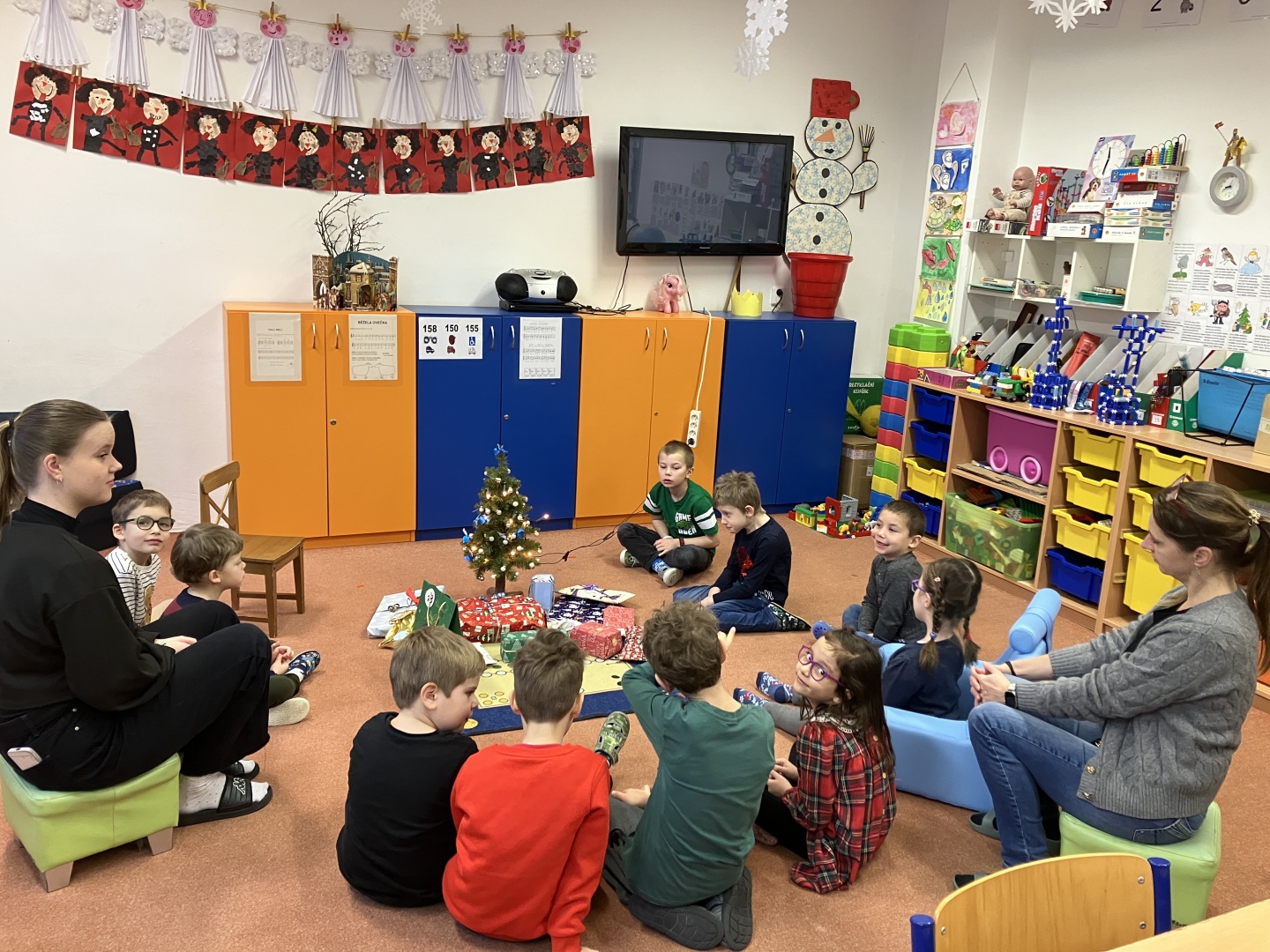 Už od konce listopadu se všechny děti těšily na kouzelný měsíc, kdy chodí Ježíšek. Protože jsme v tomto měsíci měli hodně aktivit, utekl nám adventní čas rychle. Vyzdobili jsme si třídu a v pátek 5.12. nás navštívil Mikuláš, čert a andělé. Ve čtvrtek 11.12. jsme pro rodiče připravili vánoční besídku, 12.12. jsme se zúčastnili vánočního vystoupení Kateřiny Ševidové v tělocvičně školy, ve středu 17.12. jsme navštívili vánoční výstavu v DDM, také jsme byli na procházce vánočně vyzdobeným Benešovem. Velkým překvapením pro nás bylo vítězství v soutěži O nejlépe vyzdobenou vánoční třídu. Poslední den před prázdninami byl v přípravce vánoční, s předáváním dárků a ochutnávkou cukroví od maminek.