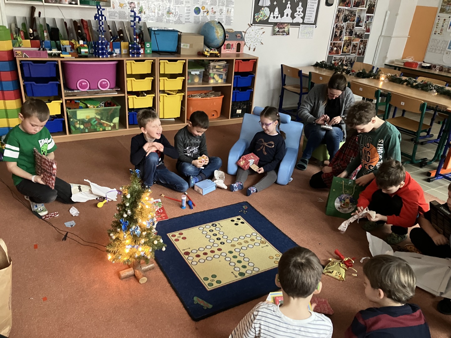 Už od konce listopadu se všechny děti těšily na kouzelný měsíc, kdy chodí Ježíšek. Protože jsme v tomto měsíci měli hodně aktivit, utekl nám adventní čas rychle. Vyzdobili jsme si třídu a v pátek 5.12. nás navštívil Mikuláš, čert a andělé. Ve čtvrtek 11.12. jsme pro rodiče připravili vánoční besídku, 12.12. jsme se zúčastnili vánočního vystoupení Kateřiny Ševidové v tělocvičně školy, ve středu 17.12. jsme navštívili vánoční výstavu v DDM, také jsme byli na procházce vánočně vyzdobeným Benešovem. Velkým překvapením pro nás bylo vítězství v soutěži O nejlépe vyzdobenou vánoční třídu. Poslední den před prázdninami byl v přípravce vánoční, s předáváním dárků a ochutnávkou cukroví od maminek.