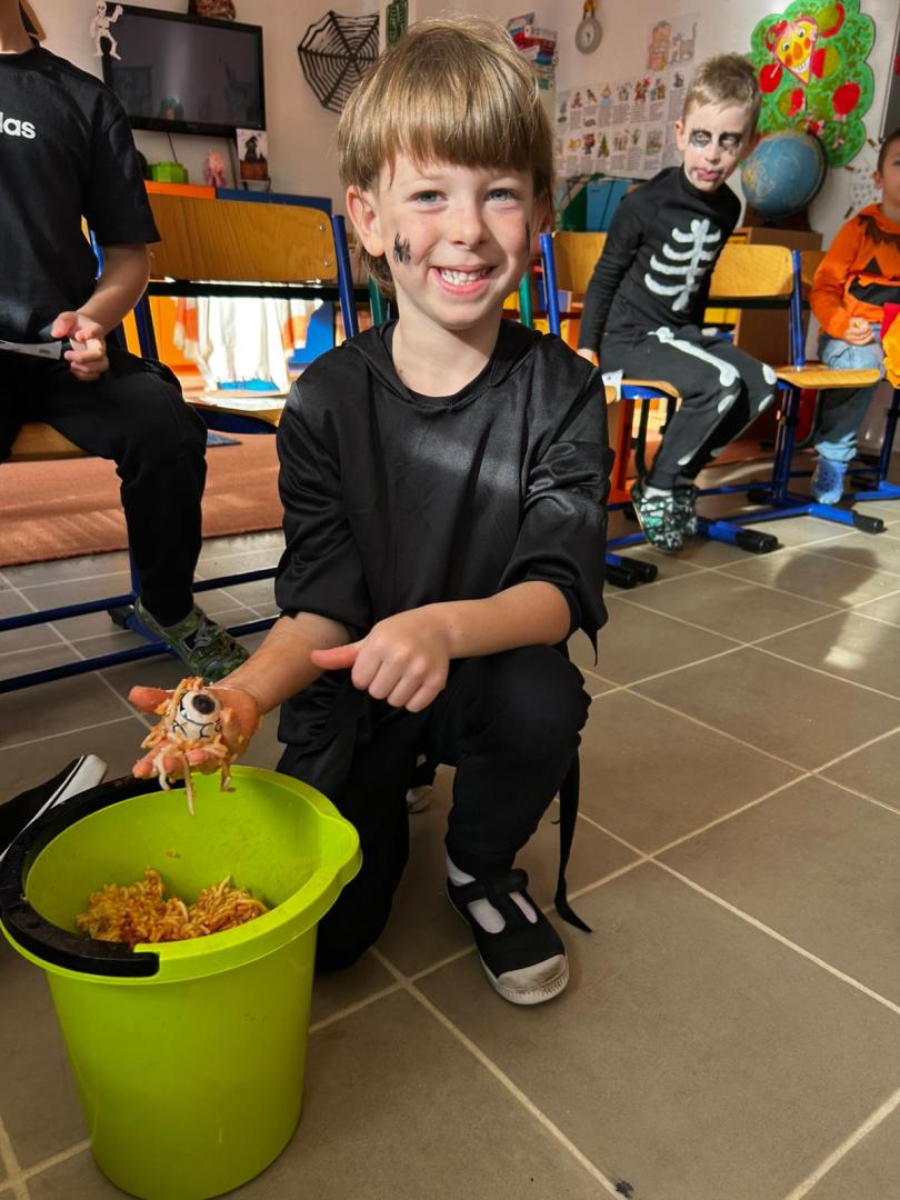 Páteční strašidelný den se v přípravce vydařil. Třídu navštívili upíři, čarodějové, čarodějnice, dýně, kočičky a Halloweenská bojovka mohla začít. Děkujeme maminkám, které myslely na mlsné jazýčky všech strašidel.